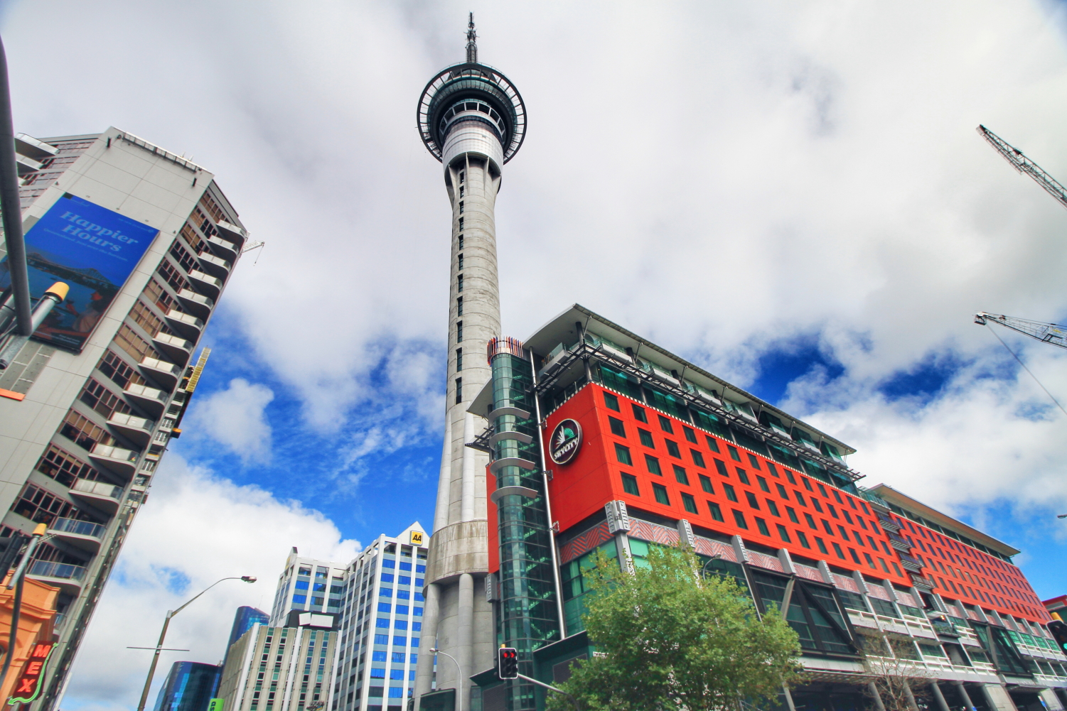 RO: Dar hei, suntem in Auckland si-avem in brate un vraf intreg de pliante si doua ghiduri turistice care aproape ca ne urla in timpane sa urcam in turn. Pai cum sa ratezi tu, turistule, s-ajungi in cea mai inalta cladire din emisfera sudica? Asta pana cand s-or supara vecinii australieni si or termina constructia din Melbourne. Ca doar cum sa fie aussies mai prejos de neozeelandezi? Insa pan’ atunci, Sky Tower detine suprematia! Si de nu-ti suna prea tentant SkyJump-ul, si-anume sa te arunci de nebun de la 192 de metri pana prinzi mai bine de 85km/ora viteza, legat de-un simplu cablu, si nici SkyWalk-ul, impopotonat intr-un costum portocaliu si prins in chingi pe marginea platformei, macar sa urci pan’ la etajul 53 sa iei un pranz in restaurantul rotativ, Sugar Club. Sau si mai bine, sa te duci direct la platforma de observare de la etajul 60 (Sky Deck) de unde vezi intreg orasul de la 220 de metri inaltime!