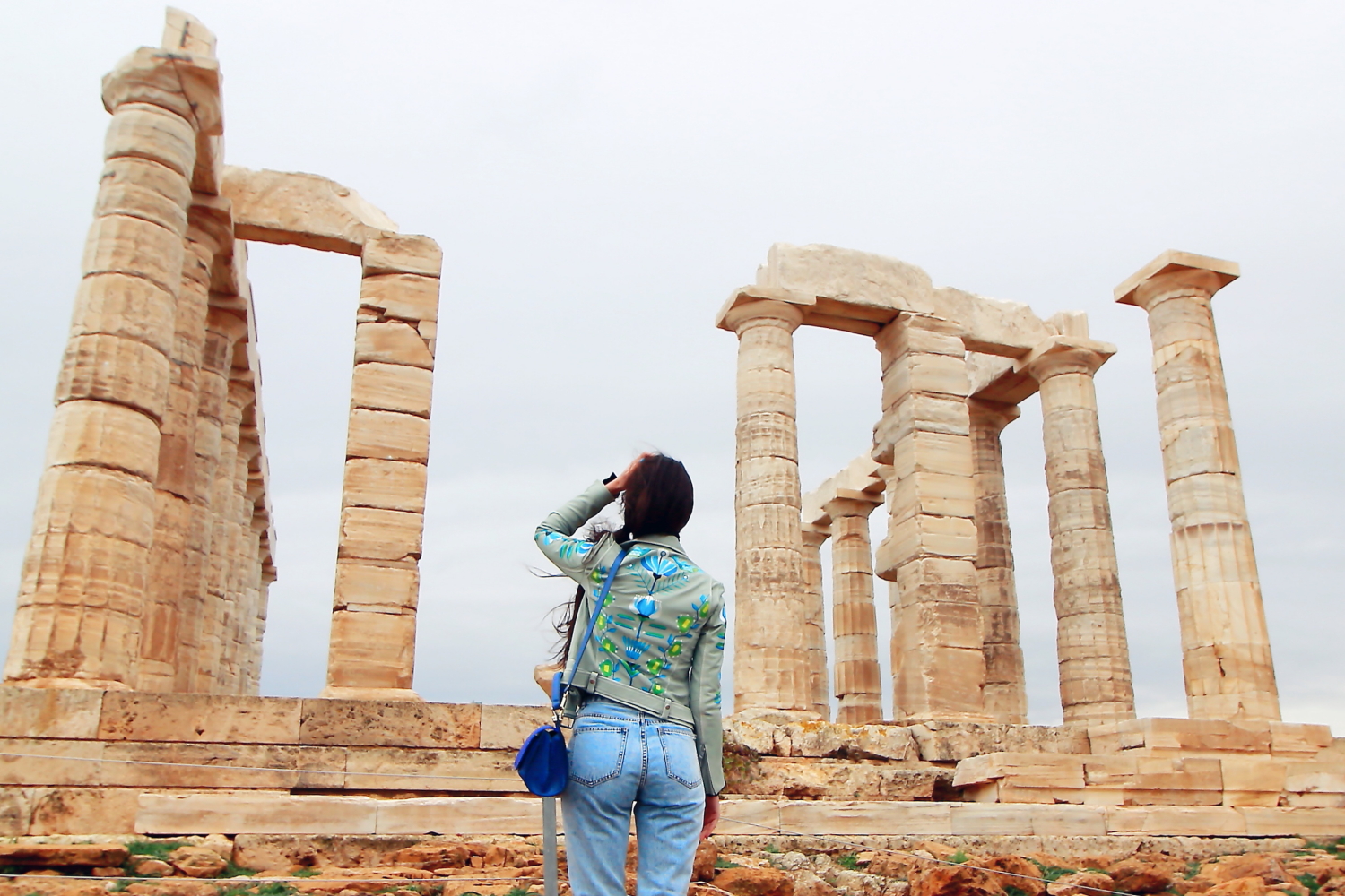 EN: Ok, and after we’re fooling around in the olive groves as the Olympic athletes without a crown, and after we’re facing the though wind blowing into our faces, we’re heading towards Cape Sounion. And we get there in no time! Temple of Poseidon, the one perched high above the sea, at the end of Attica peninsula. Honestly, the place is famous for its gorgeous sunsets seen from up above, but the view during the day is not bad either. Not at all! Sixty meters above the Aegean Sea, the wind blowing so much that you can barely breathe and… de cautat expresia din reclama….. At least there’s no one around and the temple is just ours. And that’s how we managed to see two of the three temples that form the Sacred Triangle of the Athenians. The first one is the Parthenon, the second one the Temple of Poseidon and the third one is Aphaia Temple from Aegina island. We’re leaving Aphaia for next time, as we’re almost missing our flight with so many ancient ruins 😀