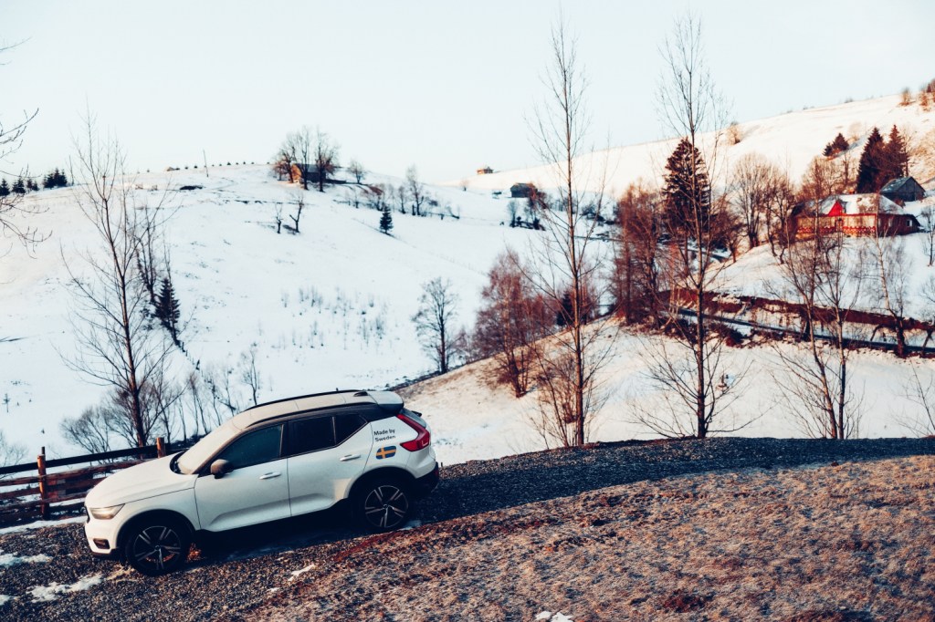 EN: we arrived on Saturday morning at the tiny house and everything was covered in snow, including the road to the house. Our hosts advised us to leave the car at the beginning of this dirt road and walk 2 minutes to get to the house. It was not necessary to carry the luggage as they helped us with an ATV. But then we realized that we could drive on that road, having a 4×4 car, which we actually did, without having any problems but being guided by our hosts. The problem with this road is the fact that it is very steep and narrow and if there is no second person to guide the driver very well, it can slip. But other that that it is a road covered with pebbles so normally it should be ok for any 4×4 car. But for those who to do not dare to go with the car closer to the house, the official parking lot is at the beginning of this road, which belongs to Tripsylvania Tiny House as well.