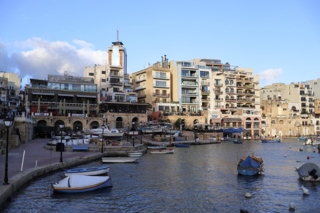 Initial chiar voiam sa ne cazam in Valletta (gasisem niste Airbnb-uri dragute) insa apoi am realizat ca ne-ar fi putin greu sa fim in mijlocul orasului, in cladiri care cel mai probabil nu au lift sau parcare pentru masina inchiriata, asa ca ne-am reorientat cautarile de cazare in zona St. Julian’s si Sliema (si in final am ales hotelul Hilton din Portomaso, St. Julian’s – spunem noi ca am facut fara doar si poate cea mai buna alegere). Cat am stat in St. Julian’s am crezut ca Spinola Bay este singura zona de interes a statiunii (pentru ca hotelul nostru era destul de aproape si ajungeam usor). Un golfulet mic si linistit, cu barci luzzu (barcile lor traditionale, colorate) si restaurante si terase. In ultima zi insa am descoperit si zona St. George’s Bay, mai vibranta, cu un shopping mall (Baystreet Shopping Complex), multe cluburi si terase. Adica o zona deloc pentru noi :)))  Era un pic dezolanta zona aceasta (poate pentru ca era iarna si totul parea inchis). Dar ne-am dat seama ca daca am fi stat in zona aceasta cazati, perceptia noastra despre Malta ar fi fost complet, dar complet diferita (in sens rau). Asa, stand in zona Portomaso, mai linistita si mai exclusivista, ni s-a parut minunat St. Julian’s. De asemenea, zona golfului Ballutta (in fata hotelului Marriot) este foarte draguta, noi ne opream acolo sa vada Alexei valurile, in plimbarile noastre pe jos pana in Sliema. Vara aici este o plaja draguta (si aglomerata din cate am inteles). Am primit foarte multe recomandari de restaurante in St. Julian’s, din pacate insa nu am putut sa incercam mai mult de… unul singur 😀 Si anume restaurantul Raffael, unde ne-am oprit din pura intamplare, pentru ca avea priveliste spre Spinola Bay si o terasa draguta (am mancat insa o pizza foarte buna aici).