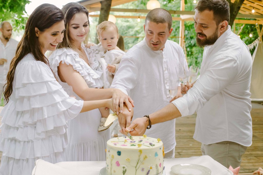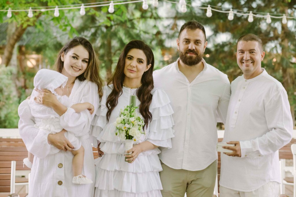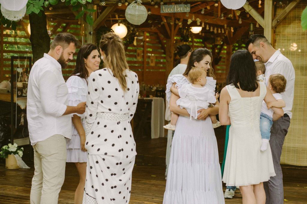 Anastasia s-a nascut vara, in plina pandemie, cu multe restrictii pentru evenimente si vreme de cateva luni (cat a fost vara) am fost intr-un haos de nedescris, care efectiv nu ne-a lasat sa ne gandim absolut deloc la botez. Si ca sa fiu complet sincera, ma saturasem de “evenimente restranse”, de simple mese la un restaurant, de intalniri la noi acasa si de sarbatoriri simple, cu cat mai putini invitati, extrem de precauti si speriati de riscul de a ne imbolnavi. Voiam sa avem o petrecere de botez in aer liber, la care sa ne fie alaturi prietenii, familia, cei dragi, voiam sa ne simtim bine, sa fim cu totii, sa ne imbratisam, sa radem, sa ne bucuram ca suntem impreuna. Asa ca am decis sa amanam botezul pana aveau sa se mai linisteasca apele. Si intr-un final s-a intamplat lucrul acesta, astfel ca am stabilit ca botezul Anastasiei sa fie facut in acelasi timp cu prima ei aniversare. Pe 11 iunie 2022, la Conacul Serghiescu. Aveam contactele celor de la conac (incepusem discutia despre botezul lui Alexei inca de pe atunci), le-am scris prin aprilie un email lung prin care ceream datele disponibile din aceasta vara si am avut noroc sa putem alege dintre ultimele doua sambete libere. Una in mai (insa era prea din scurt pentru toata organizarea) si una in iunie, la inceput de luna. Am rezervat in secunda imediat urmatoare sambata din iunie, convinsi fiind ca avem timp suficient sa ne pregatim si ca sansele de vreme buna sunt mai mari. Nu am avut nici timp suficient (tot pe ultima suta am rezolvat toate, cum era de asteptat), nici vreme neaparat buna (a plouat torential, insa dupa cum voi povesti in articol, a fost de poveste!).