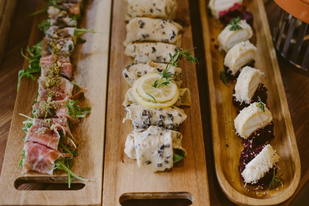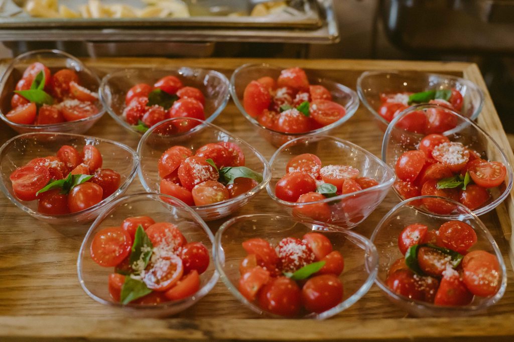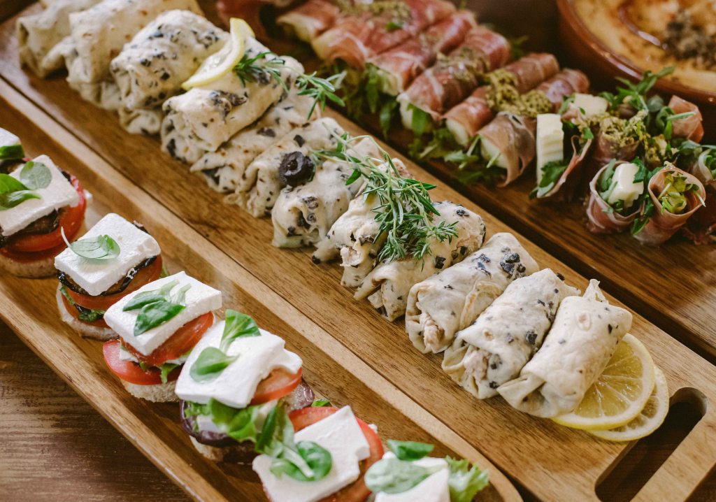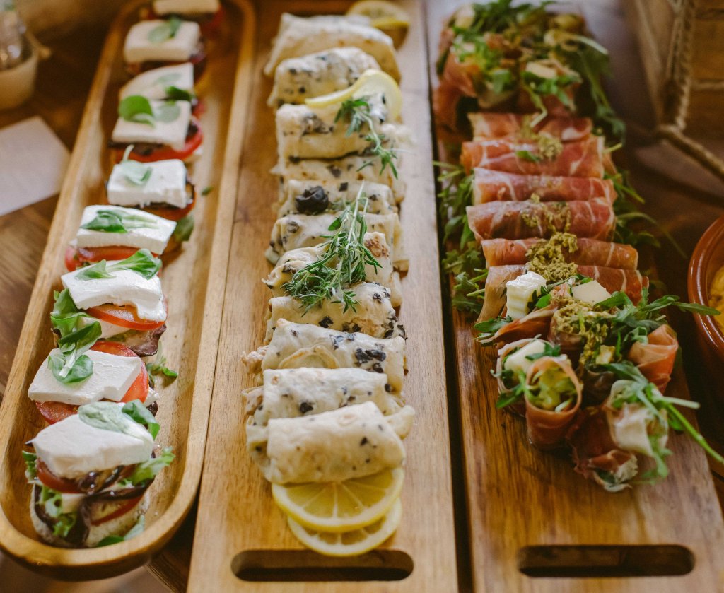 Dupa ce am rezolvat toata partea aceasta logistica, aveam doua lucruri de care trebuia sa ne ocupam destul de urgent: de mancare (cei de la conac nu pot oferi mancare, trebuie luat catering separat) si decoruri. Pentru partea de mancare nu a fost deloc complicat, ne-au fost recomandati cei de la Gala Catering (pentru ca mai facusera multe evenimente la Conacul Serghiescu si aveau recenzii foarte bune), insa eram putin stresati pentru ca aveam experienta evenimentului de la botezul Alexei cand mancarea (tot asa, tip bufet suedez) a fost mult prea putina cantitativ (pur si simplu am ramas fara mancare la nici 30 minute de cand a inceput oficial petrecerea). Nu ne doream un meniu cu servire la masa, ne gandeam ca nu s-ar potrivi neaparat cu ideea de petrecere relaxata, de gradina, asa ca am optat pentru bufet suedez. Am avut o lista absolut uriasa din care sa alegem variante de meniu, fie preparate singulare, fie meniuri deja configurate. Mi s-au parut incredibil de organizati cei de la Gala si spre rusinea mea… i-am stresat in toate modurile posibile cu intrebari, schimbari, rugaminti speciale. In final mancarea a fost GENIALA. Extrem de gustoasa, personalul foarte prompt si dragut, barul (am luat si pachetul de bauturi de la ei) extrem de ofertant. Stiu ca sunt foarte renumiti si probabil ca nu au neaparat nevoie de inca o recenzie pozitiva, insa da, am fost extrem de multumiti de mancare si de servicii. Tot de la Gala am inchiriat si vesela (atat pentru mesa, catsi pentru tort) si tacamurile (am vrut farfurii simple, tacamuri aurii si servetele de textil).
