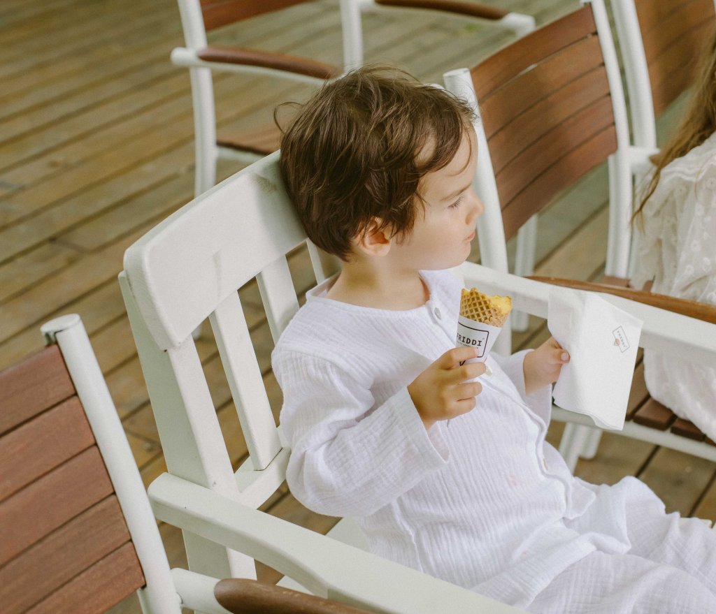 Nu am avut candy bar pentru ca ne-am gandit ca fiind foarte cald, multi invitati nu vor manca dulciuri (aveam experienta aniversarii lui Alexei de trei ani, tot asa pe caldura, cand am luat un micut candy bar si ne-am intors acasa cu mai bine de trei sferturi din dulciuri). Am avut insa inghetata 🙂 Deja ne-am facut un obicei din a lua inghetata la evenimente (nu sunt eu mare fan ciocolata dar inghetata as manca la orice ora din zi si din noapte, in orice anotimp, fie canicula sau geruri si ninsori :D). Am avut o vitrina maricica, pentru 50 de persoane, cu patru arome diferite de inghetata de la Friddi. Mai mereu luam de la ei, ne place foarte mult inghetata lor si ne-a fost de folos faptul ca aveau si optiuni fara zahar (pentru copilasii mai micuti) si fara lapte (pentru copilasii cu diverse alergii alimentare).