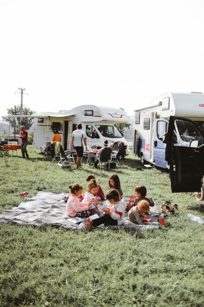 Dimineata ne-am trezit tarziu. Spre surprinderea noastra, copiii au dormit pana la 8, nu intelegeam ce se intampla cu ei 🙂 Si poate chiar ar fi dormit mai mult daca nu am fi inceput sa ne foim noi prin masina si sa ii trezim 🙂 Cred ca cel mai mult imi plac diminetile in autorulota 🙂 Cand deschidem geamul si se simte aerul acela rece de dimineata iar noi stam intinsi in pat, inca inveliti, in pijamale, cu parul ciufulit si ochii mici, dar cu nasul afara, pe geam. Si asa de dragi imi erau micutii cum se inghesuiau unul langa altul ca sa se uite pe geam, sa vada toate celelalte autorulote de sus! Timp in care Andrei pregatea micul dejun jos, in bucatarioara mica (care in autorulota aceasta, mai mare ca cea de data trecuta, ne parea de fapt uriasa!) de sub noi. Mi s-a parut genial ca am avut o autorulota mai mare de data aceasta. Mult mai mult spatiu de depozitare (aveam chiar un dulap-sifonier!), doua banchete in zona de “living”, o bucatarie mai lunga, o baie mai spatioasa. Insa bineinteles, tot spatiul acesta vine si cu un dezavantaj, faptul ca o masina mai mare este un pic mai greu de condus. Sincera sa fiu, mie mi s-a parut mai inchegata ca cea de data trecuta, parca se auzeau mai putine zgomote in drum. Sau poate ca (de fapt, mai mult ca sigur) am impachetat si incarcat autorulota intr-un mod muuuult mai practic. Nu ca data trecuta cand aveam o multime de lucruri mici prin dulapuri care se tot miscau de colo colo. De data aceasta, am luat lucruri de care chiar aveam nevoie. Pentru un singur weekend cu autorulota nu am mai luat provizii pentru sapte saptamani, sticle de ulei/otet, pungi de paste si tot felul de minuni, am luat mancare deja gatita (ca sa nu gatim aproape deloc, exceptand micul dejun) si nimic in plus. Si ne-a fost tare bine asa, am salvat foarte mult timp (si pentru ca nu am gatit, dar si pentru ca nu am avut multe de incarcat/descarcat in autorulota la dus si la intors). Este a treia oara cand mergem cu autorulota si din fiecare plecare mai invatam cate ceva 🙂