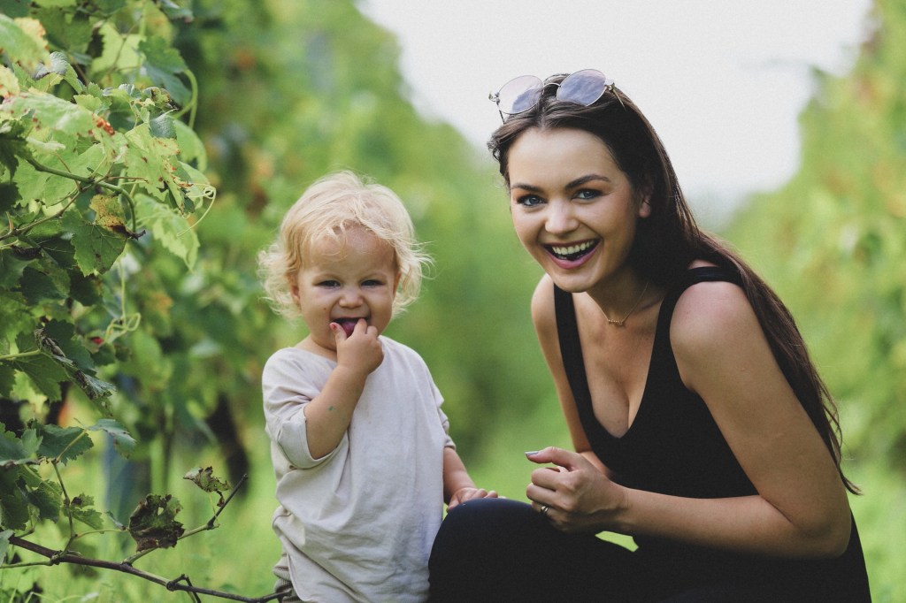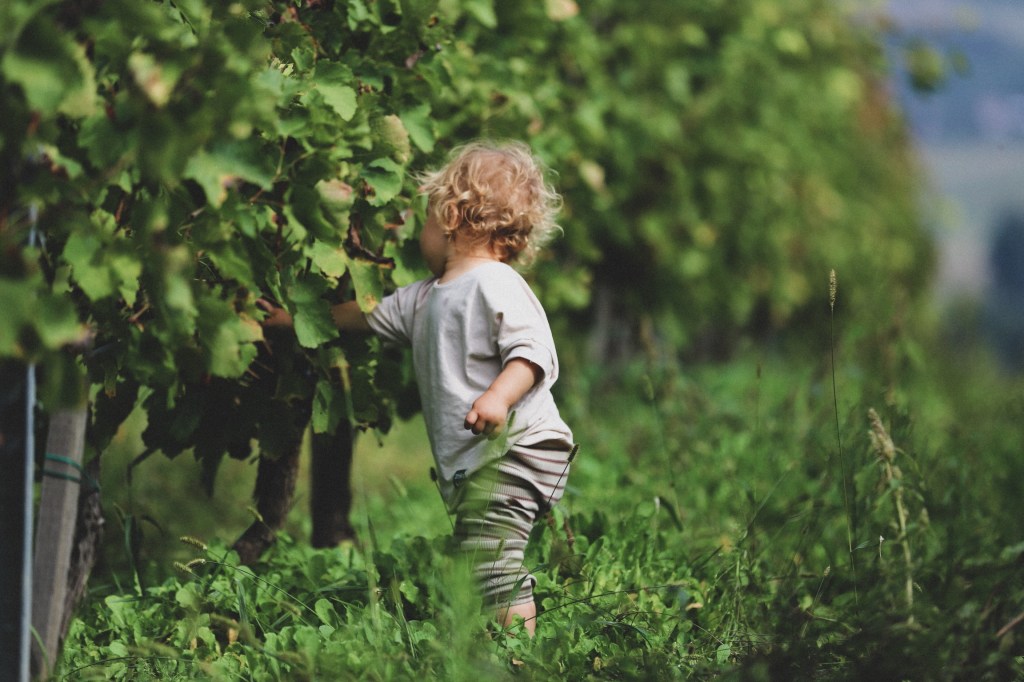 Dupa ce fiecare familie a luat micul dejun la autorulote, undeva aproape de pranz ne-am organizat sa urcam pe deal, sa vedem via. Nu era un drum prea lung, dar erau cam 500 metri de urcat, unele portiuni mai abrupte. Pentru noi era un drum usor, pentru copii insa… mai greut 🙂 Asa ca vrand, nevrand, am ajuns sa ii caram pe amandoi in brate pana sus, si cum ne-am obisnuit deja, am fost ultimii care am ajuns :)) Si nu, nu eram singurii cu copii asa de mici, deci nu putem folosi “scuza” aceasta 🙂 Era minunata privelistea de sus, cu dealurile impanzite de vie. Si chiar a fost grozava ideea celor de la Joy2Wander de a organiza un concurs de cules struguri in vie. Pentru copii, dar ne-am bagat si noi in joc! Scopul nu era sa culegem cat mai multi struguri, ci sa ne distram si sa ne aventuram cat mai mult in vie. Si asta am si facut, ne-am dus in randurile mai indepartate din vie si am cules ciorchini grasuni si plini de struguri. Alexei isi luase rolul foarte in serios (a devenit foarte competitiv in ultima vreme) si a cules cu foarte multa sarguinta, iar Anastasia era fascinata de cules si mancat. Se oprea in dreptul unui ciorchine si culegea bob cu bob. Manca asa linistita, unul cate unul, iar cand termina, se plimba singurica prin vie pana cand mai zarea un ciorchine. Bucuria aceasta a lor ne umple sufletele, cum li se pare lor fascinant tot ce ni se pare noua firesc. La finalul concursului fiecare copil a primit un premiu simbolic.