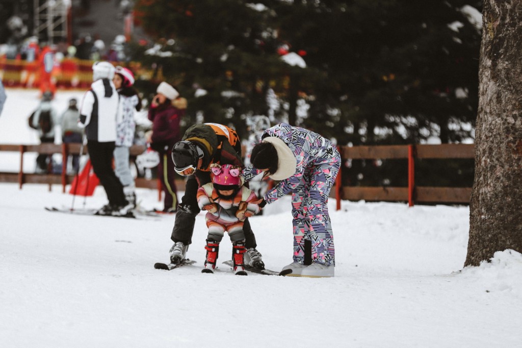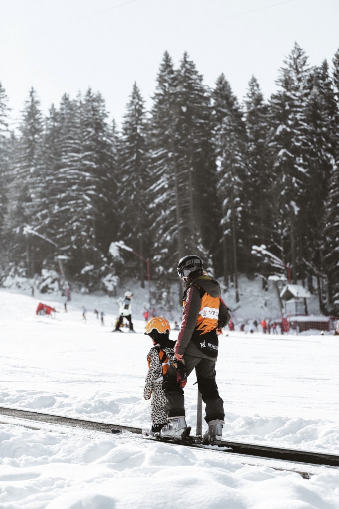 Scriu articolul acesta cu emotii si cu mult sters si luat de la capat propozitiile, pentru ca este prima noastra vacanta la schi cu micutii mici. Niciunul dintre noi nu stie sa schieze sau sa faca orice fel de alt sport de iarna (bine, cu destul de multa indulgenta as putea spune ca m-as descurca onorabil sa stau pe patine), asa ca saptamana aceasta de mers la schi chiar este mare lucru pentru noi. Am avut totusi o tentativa de a invata sa schiem acum vreo zece ani, in Bansko, insa dupa un atac de panica in varful partiei (desi eram cu monitor, care ma invata sa schiez) am promis ca nu ma voi mai urca niciodata, absolut niciodata pe schiuri. Fara niciun pic de mandrie recunosc ca m-am tinut de cuvant pana acum. Insa chiar daca relatia mea/noastra cu sporturile de iarna sau iarna in sine nu este tocmai cea mai prietenoasa, nu vrem sa transmitem acelasi lucru si copiilor si nu vrem sa ii tinem in bula noastra de confort. Pentru ca da, eu as trai foarte impacata tot restul vietii fara sa stiu sa schiez (ca multe alte sporturi pe care nu stiu sa le fac si nu le-am incercat niciodata, inclusiv mersul pe bicicleta, invatat la 35 de ani), insa daca ii expunem pe copii schiatului, daca ajunge sa le placa sportul acesta si daca vor vrea sa faca asta an de an, ni se pare ca le deschidem niste porti. Va fi cu siguranta un efort pentru noi, insa daca ne mobilizam sa invatam si noi, in acelasi timp cu ei, vom reusi sa avem si alt tip de vacante de acum inainte. Oricat de mari iubitori de mare si plaja am fi, nu vrem sa creasca gandindu-se ca vacanta inseamna doar mersul in destinatii cu palmieri.