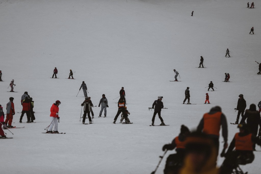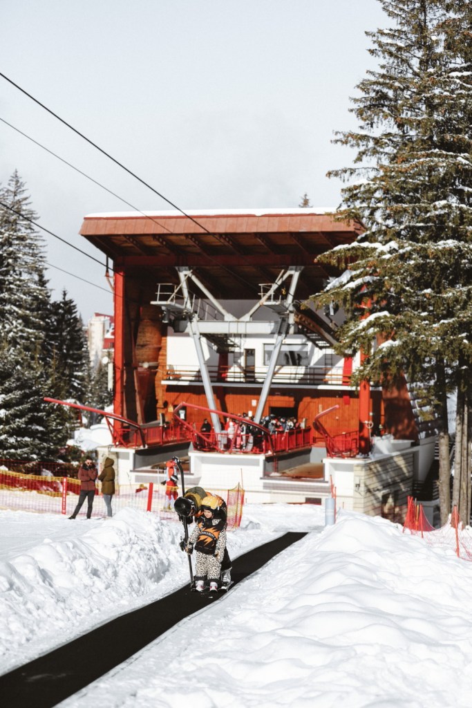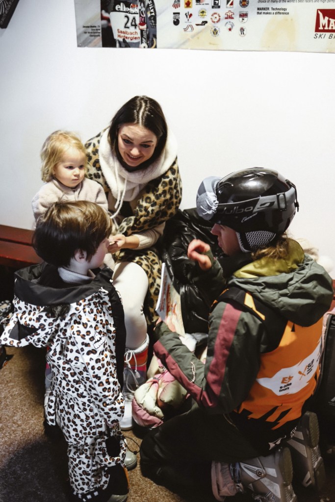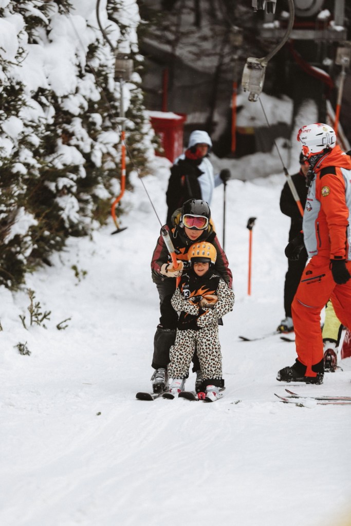 Nu stiu exact de ce mi-am imaginat ca aceste cinci zile vor fi relaxante si poate putin plictisitoare (cautam in ultima vreme si putina plictiseala pentru ca ultimele luni au fost doar pe repede-inainte). Au fost insa niste zile de bootcamp, cu program stabilit pentru fiecare zi in parte: trezit devreme dimineata, mers la schi, mers la pranz, somnul de pranz al copiilor, iesit la sanius pana la lasarea serii, cina si repeat. Imbracatul/dezbracatul/luatul in brate/caratul pe scari/“mami brate”-ul/frigul, toate acestea m-au cam epuizat, astfel ca la final de zi cadeam cu totii lati de oboseala (Andrei a si lucrat pe tot parcursul saptamanii). Insa acum, la final, chiar nu imi dau seama cum ar fi altfel. Nu suntem inca in momentul in care sa ii putem lasa pe cei mici la lectiile de schi iar in timpul cat invata noi sa ne relaxam la un vin fiert. Inca nu suntem acolo, mai trebuie sa treaca putin timp. Chiar si Alexei, la patru ani si jumatate, are nevoie de noi sa-i fim aproape atunci cand se intampla ceva nou. Are nevoie de incurajare, de prezenta noastra (mai ales a mea) si de implicare. Sa fim acolo, sa ne vada de pe partie, sa ne faca cu mana, sa ne arate cum merge sau sa ne zambeasca. La Anastasia toate acestea inmiit, mai ales ca trece printr-o perioada de anxietate de separare foarte pronuntata. De fapt si de drept, nu am avut nici cea mai mica intentie sa o inscriem si pe Anastasia la cursurile de schiat, ni se parea ca efectiv nu ar avea niciun sens sa incepem deja. Ca ar fi prea mica, ca nu ar interesa-o, ca am speria-o sau ca i-am impune sa faca ceva ce chiar nu e inca potrivit varstei ei. Dar nu am avut de ales. Il vedea pe Alexei si isi dorea sa incerce si ea. Ba chiar in prima zi a avut mai multe momente tensionate iar noi le asociam cu drumul, cu suprastimularea de partie sau cu frigul. De fapt era extrem de suparata ca ei nu i se dadusera nici clapari, nici schiuri, nici echipament de schiat. Si am realizat lucrul acesta abia a doua zi, cand am si incercat pentru prima oara sa o asezam pe schiuri. Probabil ca este prea devreme, nu zicem nu. Un an si sapte luni probabil ca nu e o varsta la care sa se recomande cursuri de schiat. Dar am ascultat de ea si daca tot am vazut-o pregatita si dornica… am profitat. Sigur nu a invatat neaparat ceva anume, dar s-a familiarizat cu ideea de partie, schiuri si instructor.