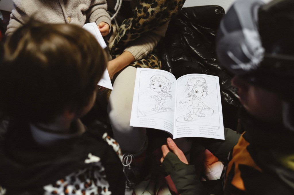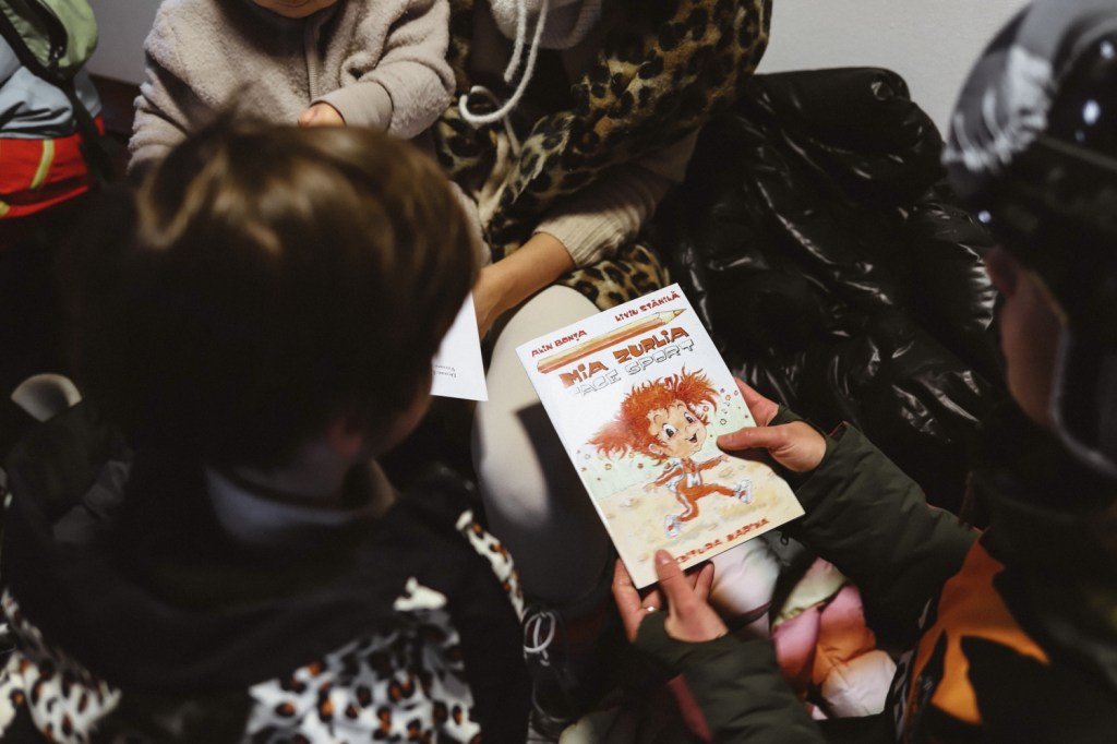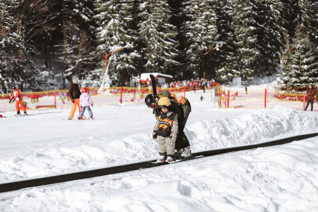 Prima zi a fost cea mai complexa zi 🙂 Am mers la partie imediat cum am venit de pe drum si totul a fost fascinant si nou si… mult 🙂 Clapari, schiuri, partie, banda de urcat, instructorul de schi, totul. Alexei a primit multa informatie, s-au intamplat multe in jurul lui si chiar daca era totul extrem de interesant si palpitant, a rezistat cam 40 de minute pe partie. Insa a fost mai mult decat ne asteptam, gandindu-ne ca va fi poate mai reticent la atat de multe noutati primite toate de-a valma in prima zi. A fost si ziua-revelatiei, in care ne-am dat seama ca nu vom avea nicio sansa sa stam pe marginea partiei cu Anastasia, uitandu-ne cum se da fratiorul si ca intr-un fel sau altul trebuie sa alternam orele intre amandoi, astfel incat in fiecare zi sa se dea amandoi cu schiurile. Prima lectie a inceput usor, cu mult povestit pentru amandoi, cu prezentat schiurile si claparii, “ghetele de astronaut” care te fac sa mergi ca un astronaut pe Luna. Am inceput intai cu intalnirea de la centru, unde ne-am cunoscut cu Karina, care le-a prezentat locul de unde se inchiriaza schiurile si claparii, le-a adus cate o carticica de colorat cu Mia Zurlia pe schiuri si placa (Mia este fetita Karinei) si ne-a explicat ce alte lucruri le-ar fi necesare copiilor pentru orele de schi. Spre exemplu, aveam cagule pentru ei, insa erau prea groase, nu puteam pune castile pe deasupra, asa ca ne-a recomandat sa le luam fie niste cagule simple de la Decathlon, din fleece, fie niste cagule din lana merinos subtiri (cele de la Joha spre exemplu). Luasem doua tipuri de sosete pentru ei, unele subtiri din lana merinos, care insa erau cam scurte (pentru schiuri este nevoie de sosete lungi) si altele mai lungi, speciale pentru schiat, dar care erau cam prea groase, adaugau foarte mult volum piciorului si aveau nevoie de clapari mai mari decat ar fi fost necesari in mod normal. Manusile lui Alexei erau potrivite (ni s-au recomandat manusi cu un singur deget sau cu doua – cele care acopera patru degete si au un deget separat pentru degetul mare), si ca grosime, si ca marime (ramanea ceva loc peste degete, cam cat sa le putem ciupi bine), fiind recomandat sa fie un picut mari ca sa se poata pastra cum trebuie caldura (daca sunt fixe le este frig in ele, daca sunt prea mari, la fel). Costumul lui Alexei de schi este un costum Weedo, special conceput pentru schiat, cu tot felul de functionalitati pentru schi (are chiar si functie de toaleta, ca poata merge la baie fara sa se dezbrace complet). Costumul Anastasiei nu este neaparat pentru schi (insa nu am banuit ca avea sa faca si ea lectii deja), era un pic cam prea pufos si putin mic (i se tot ridica la picioare si maneci), anul ce urmeaza ii vom lua si ei un costum Weedo. Pe sub costumele de schi este posibil sa ii fi imbracat cam gros dar nu imi dadeam seama cat de rece va fi afara si cat de mult efort fizic vor face ei. Asa ca le-am pus cate un prim start de lana subtire iar apoi inca un strat un pic mai grosut (Anastasiei ii puneam chiar strat de fleece peste, parea cam prea infofolita si nu se putea misca in voie). Peste echipament copiii au purtat o vestuta a academiei, ca sa poata fi recunoscuti usor pe partie, sa se stie in permanenta ce copil este pe partie, de la care scoala de schi.