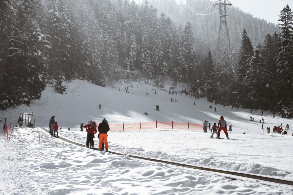 De a doua zi ne-am structurat orele de curs in asa fel incat sa poata invata amandoi. Incepea Alexei pe partia de copii iar in timpul pauzei lui, continua Anastasia. Karina a profitat de faptul ca era partia libera (marti la 9 dimineata) si i-a aratat lui Alexei “calutul de zapada”, si anume teleschiul. Sincera sa fiu, eu sunt extrem de speriata de teleschi, mi se pare foarte greu de folosit si foarte periculos (asta dupa ce am incercat in Bansko sa il folosesc si nu m-am descurcat deloc). Mi-era teama sa nu ii transmit frica aceasta a mea si lui Alexei, insa din fericire, am reusit sa disimulez destul de bine entuziasmul. Astfel ca nu doar ca nu a avut absolut nicio problema cu teleschiul, dar chiar i-a placut la nebunie. Au urcat de doua ori insa nu s-au dus pana in varful partiei, ci au ramas in zona de baza. Atunci i-a explicat si ca vor folosi un accesoriu, un “serpisor” care lega cele doua schiuri astfel incat sa nu indeparteze foarte mult picioarele. Dupa o ora a urmat Anastasia, care a vrut sa faca doua ture la partia de copii (ea ar fi vrut de fapt mai multe, dar urmau si alti elevi dupa noi). La Anastasia lucrurile sunt mai putin tehnice, in mare parte e doar o joaca, doar o alunecare in bratele instructorului. Ea sta in picioare pe schiuri, tinuta intre schiurile instructorului, si merg pe partie impreuna. La ea nu s-a insistat pe notiuni precum pizza, cartofi prajiti, greutate, nimic. Pur si simplu merge pe partie sustinuta de instructor. Cu toate acestea, a avut mici momente in care instinctiv ridica unul dintre picioare (cu claparul si schiul atasat), ceea ce se pare ca este mare lucru pentru un copil asa de mic. Fiecare iesire de pe partie si fiecare lectie terminata era un motiv de plans neconsolat, ar fi stat chiar mai mult decat planuiam noi.