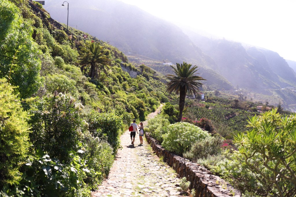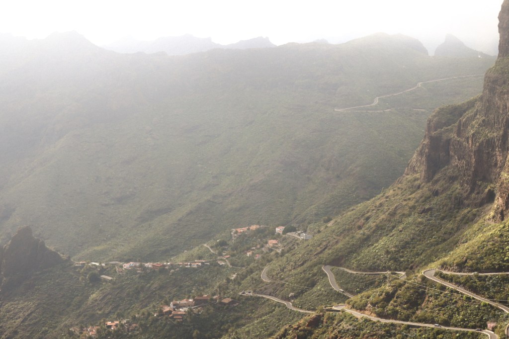 Drumul catre satul Masca! Un drum de aproape o ora din Garachico, absolut spectaculos! Nu ne-au descurajat curbele si intortochelile pe care le tot vedeam pe Google Maps pe TF-436 (unul dintre cele mai spectaculoase drumuri din Tenerife), iar calatoria in sine, pana la satul Masca, ni s-a parut cel putin la fel de frumoasa ca renumitul sat. Drumul este destul de greu (insa nu cumplit de greu), sunt recomandari specifice sa fie folosit doar de soferii experimentati (totusi, exista un autobuz, numarul 355, care nu stim cum, dar merge pana sus la satul Masca). Pe drum am oprit un pic la unul dintre punctele de belvedere (Mirador de Los Warriors apare pe Google Maps si este unul dintre cele mai apreciate), cu o priveliste spectaculoasa. De fapt, cam asta faceau toate masinile din jurul nostru, inaintau un pic cate un pic si opreau la locurile acestea de belvedere ca sa admire privelistea. Si adevarul e iti venea sa te opresti incontinuu.