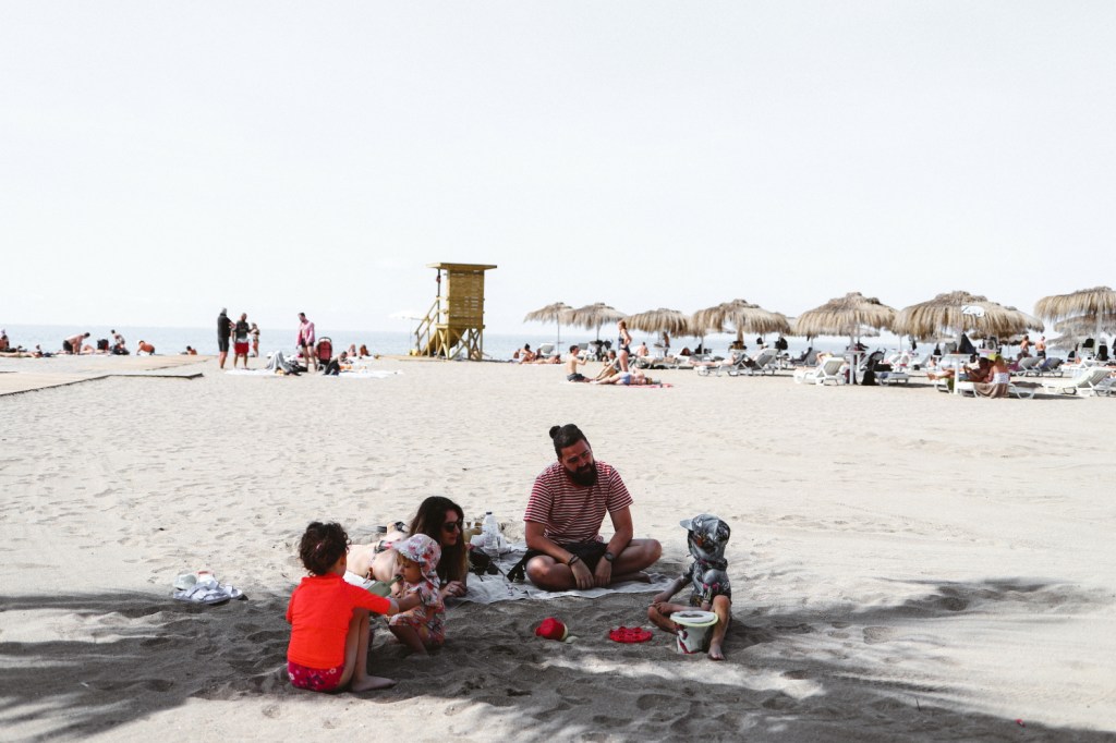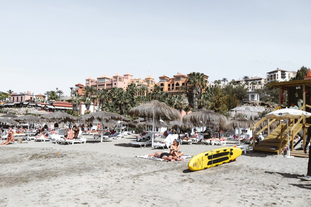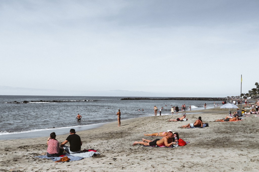 Ne-am dat cu totii intalnire de dimineata, la Playa Del Duque din partea de sud a insulei Tenerife (mai sus un pic de statiunea Costa Adeje). Alegeam plajele pe care ne doream sa mergem pe baza recenziilor, in principal cautam plaje cu facilitati (plajele mai salbatice le-am lasat ca exceptii, pentru ca ne era destul de greu sa ajungem la ele fiind cu atat de multi copii miici). Aceasta este o plaja cu nisip alb si apa lina (se adanceste usor si nu are valuri mari), multe facilitati pentru familii si multe restaurante. Nu a fost foarte usor sa gasim parcare in zona aceasta, asa ca am lasat masinile in centrul comercial El Mirador. Pentru ca era 8 martie, baietii s-au oferit sa stea cu micutii la plaja, cat noi, fetele, am mers la o terasa de pe plaja π