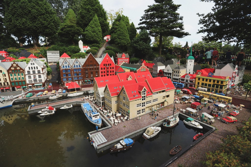 Initial, Legoland nu era inclus in traseul catre Norvegia, insa vazand cat de aproape treceam de Billund, parca era pacat sa nu mergem! Pana la urma, cea mai importanta si apreciata atractie turistica in Danemarca (dupa Copenhaga) este… Legoland Billund :))) Asa ca in dimineata celei de-a patra zi, dupa trei zile de condus nebuneste, ne-am gandit noi ca ar fi la fiiiiix o zi intr-un parc de distractii pentru copii :)) Totusi, ne-am inceput un pic mai lenes ziua, cu mic dejun afara, cu plimbat un pic cu bicicletele in camping si jucat in padure (am campat in campingul Billund Stellplatz, la cateva minute de mers cu masina de parcul Legoland, un camping dragut, aproape de o padure). Am fi putut merge cu bicicletele la Legoland, era foarte aproape, insa am ales bine sa nu o facem pentru ca oricum urma sa stam campati in alt camping (la fel ca la hoteluri, si campingurile au ora de check-out) si trebuia sa plecam cu autorulota. La Legoland a fost nebunie curata, nu ne asteptam sa fie atat de aglomerat intr-o zi de luni (special am evitat o zi de weekend, in speranta ca vom prinde mai putin haos). Insa fiind atat de cunoscut, primul parc de distractii Lego (construit inca din 1968!), construit aproape de fabrica originala de Lego, ar fi trebuit sa anticipam faptul ca va fi foarte multa lume. Mai ales ca stiam o informatie importanta despre acest loc si aeroportul construit aproape poarta-n poarta cu parcul de distractii: este AL DOILEA cel mai aglomerat aeroport al Danemarcai. Exista chiar si zboruri din Bucuresti catre Billund (cu Wizz). Si in plus, am prins si vacanta daneza in plin, deci o perioada mai aglomerata fata de normal. Insa pana la urma… ce parc de distractii din lume NU este aglomerat?