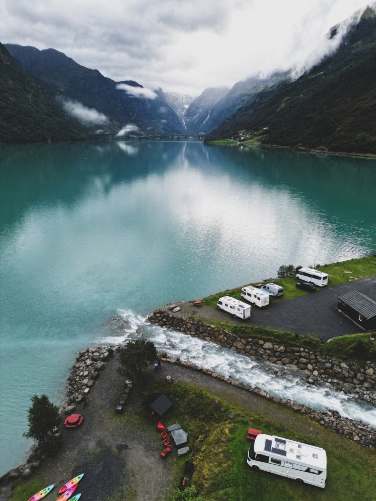 Avem deja un top trei campinguri preferate in aceasta vacanta! Au fost si nopti in care nu am campat in locuri spectaculoase (uneori chiar si in simple parcari pentru ca nu am gasit variante mai bune), insa trei dintre campingurile in care am fost pana acum ne vor ramane mereu in amintire. In ordinea preferintelor noastre, Gryta Camping, in Norvegia, la baza ghetarului Jostedal, este de departe in top. Cu privelistea de efectiv iti vine sa plangi uitandu-te la muntii acoperiti de ghetar, cascadele care se scurg din el, apa turcoaz care trece fix prin fata campingului si norii care uneori coboara de ai impresia ca ii poti atinge. E o poveste acest camping, o pura poveste. Chiar daca am prins o zi ploioasa si nu ne-am putut bucura pe deplin de camping, de plimbat in voie cu caiacele sau barcile, este de departeeee, foarte departe, cel mai frumos camping pe care l-am vazut noi vreodata. Apoi, un bine meritat loc doi pentru campingul Flam tot din Norvegia, la poalele muntilor si fiiiix la capatul fiordului Aurland (parte din imensul fiord Sognefjord). Si un loc trei pentru campingul Riis Feriepark din Billund, Danemarca, pe care eu una il consider un fel de… resort al campingurilor, pentru toate facilitatile extraordinare.