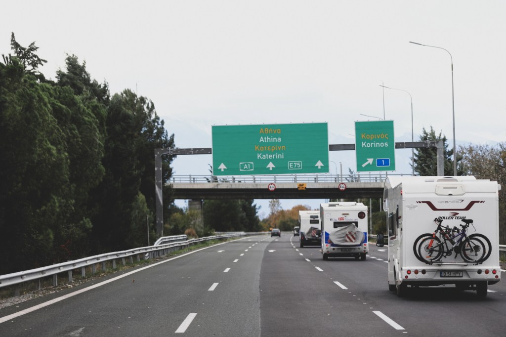 Am stabilit plecarea sambata dimineata, devreme tare (la ora 6) ca sa putem face o zi intreaga de condus cat mai mult, cat mai aproape de destinatie. Asa caβ¦ ne-am trezit la ora 4 ca sa putem pune ultimele lucruri in autorulota si ca sa avem suficient timp de ajuns la locul de intalnire. Pe o ploaaaaaie si pe un friiiiig de ne venea sa ramanem acasa, in pijamale groase si sub paturii calduroase π Un grup mare, de 12 autorulote (mai multe chiar fata de excursia in Tarile Nordice), intr-o caravana lunga de ziceai ca nu se mai termina! Chiar si vamesii din Bulgaria erau fascinati de cat de multi puteam sa fim, nu eram deloooooc ostentativi. Planul pentru prima zi era simplu: condus. De dimineata pana cand avea sa se intunece. Sau cat de mult am fi putut sa conducem, cu pauzele aferente. Am stabilit ca prima destinatie satul Nea Agathoupoli din Grecia, aflat in apropiere de Salonic, pana la care aveam de condus 9-10 ore in total, am luat vinieta pentru o luna si am pornit la drum! Vremea era destul de uratica, cu ploaie continuuuua, iar drumul prim Bulgaria, cu o masina asa de mare, a fost destul de greu. Ne tot consolam cu gandul ca pe masura ce ne vom apropia de granita cu Grecia, vremea se va indrepta insa nici nu am apucat sa gandim bine lucrul acesta ca a inceput saβ¦ ninga. Dar fulgi de fulgi, mari si desi si peisaj de winter wonderland pe geamurile autorulotei. Am facut o prima pauza mai lunga la restaurantul Dobrevski cu mancare buna (sau poate eram noi deja prea infometati), unde ne-am intalnit cu mare parte din grup. Pe unele persoane le cunosteam deja, pe altele le-am cunoscut in tururile organizate pana acum de Joy2wander.