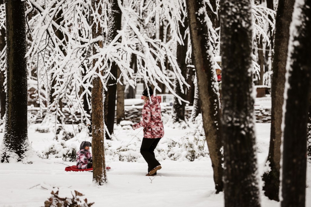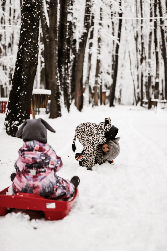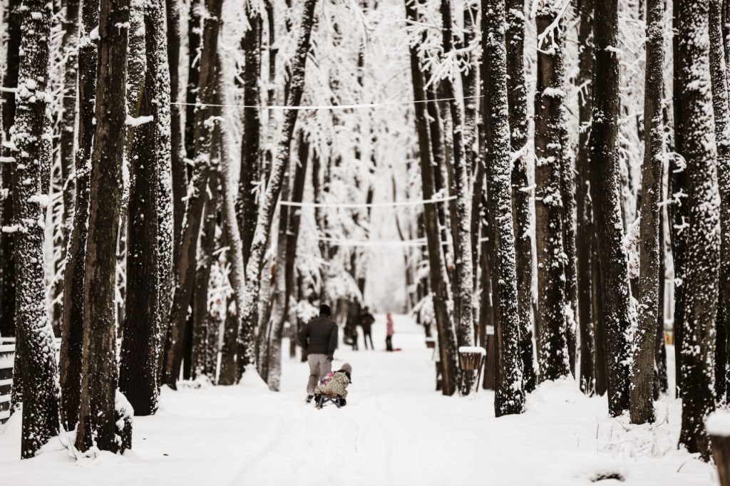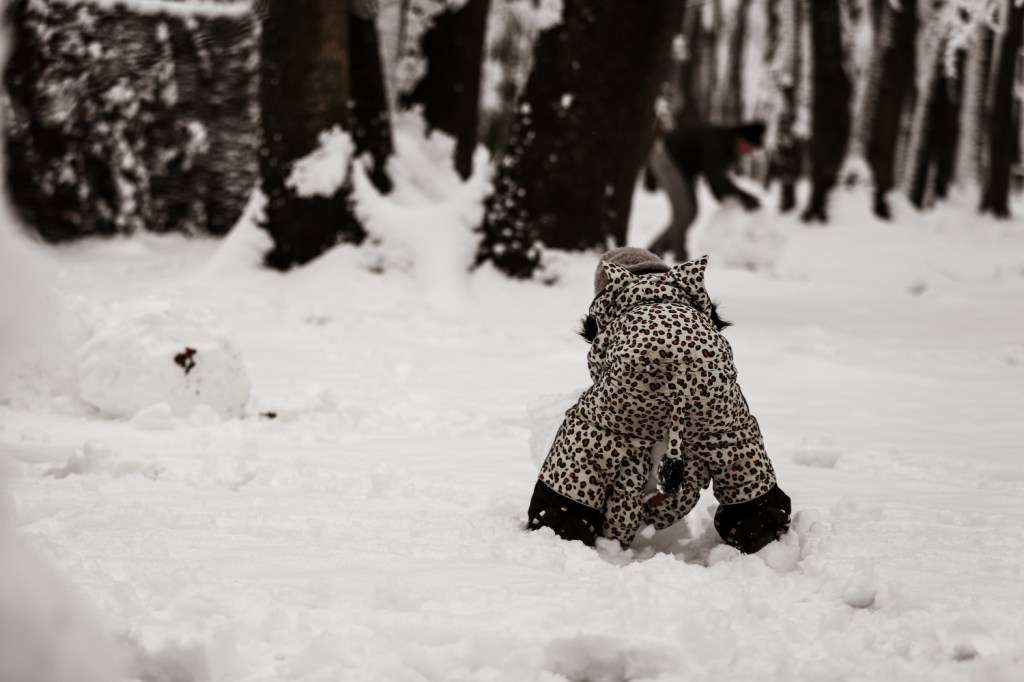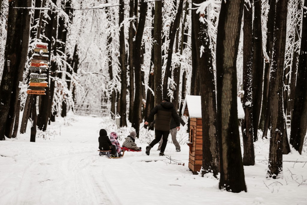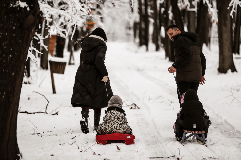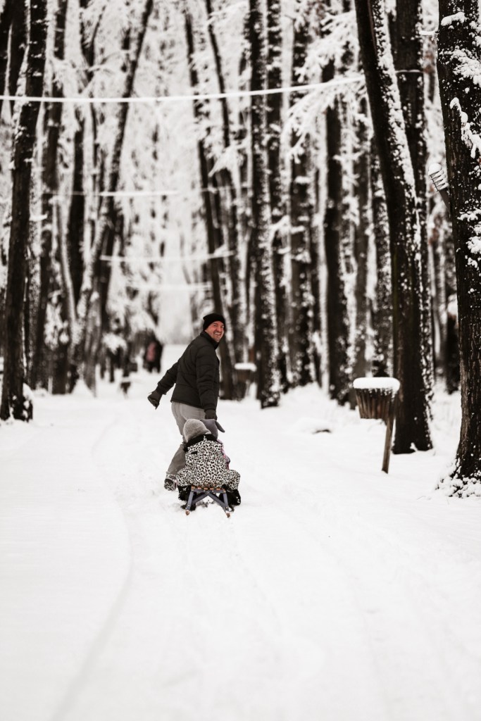In ultimii ani am vazut atat de rar zapada proaspata si curata si albaaaaa in Bucuresti, incat ieri, in toiul diminetii (aka inca noptii in cazul familiei noastre prea matinale), cand am vazut toata curtea si strada acoperita de ditamai stratul de zapada… am zis ca trebuie neaparat sa mergem undeva in padure. Sa ii tragem pe copii cu sania, sa se arunce in zapada, sa se faca clatite (sa se invarta ca niste clatite rotite in zapada), sa facem un om de zapada si sa ne batem cu bulgari! Si a fost minunaaaaat! Am mers la Edenland (vazusem ca era deschis) la prima ora si am calcat pentru prima oara zapada neatinsa. Iar apoi am facut primele urme de picioare si de sanie pe aleea din padure. Ne-am intalnit cu prietenii nostri, am baut cafeaua acolo, am tras la sanii de ne-am facut antrenamentele pentru cateva zile (hahaha) si ne-am bucurat de zapada ca de cel mai exotic lucru pe care l-am vazut in ultimii ani. Si adevarul e ca in ultimii ani chiar a fost mult mai probabil sa vedem “exotisme” decat zapada in Bucuresti 🙂