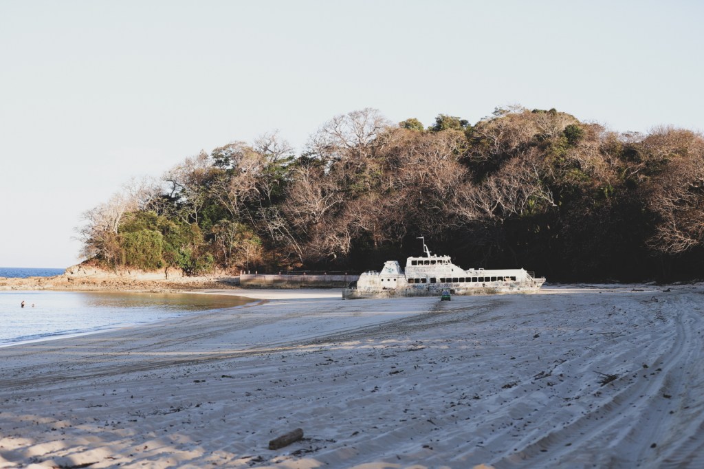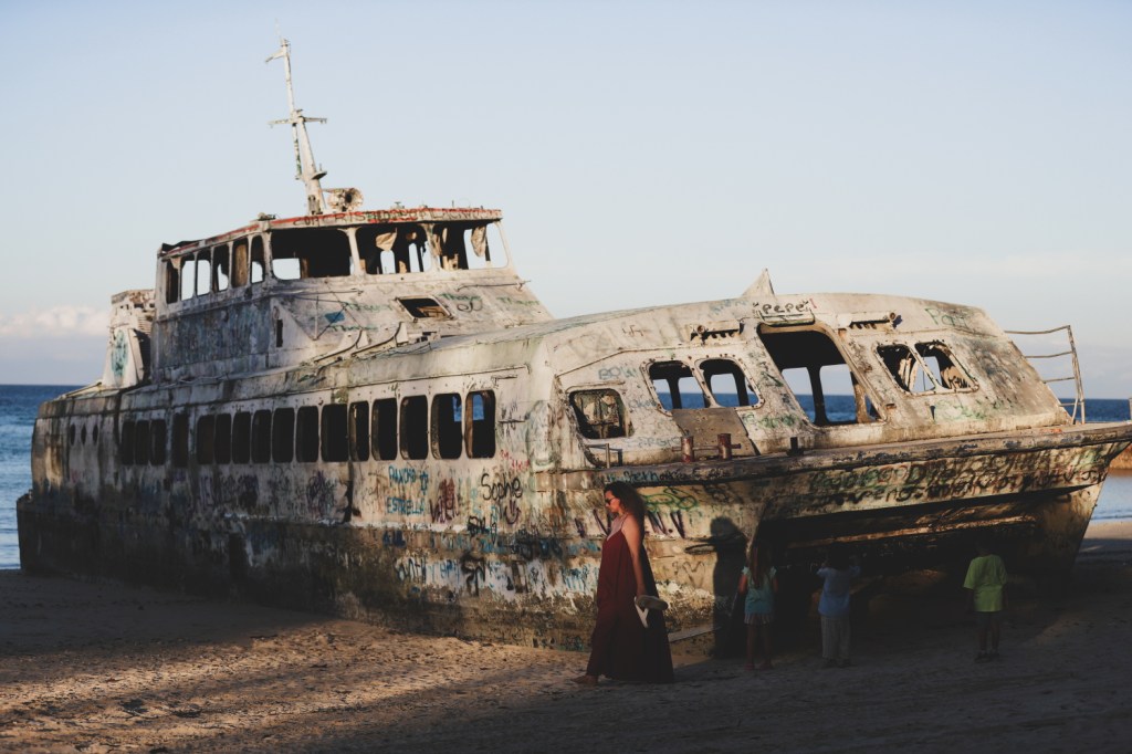 Si toata ambitia aceasta a fost declansata de fapt in momentul in care am descoperit hotelul abandonat din capatul pistei aeroportului. Fostul hotel Contadora Resort, care in anii ‘60-‘70 era o locatie supeeeeer exclusiva, pentru cei mai faimosi mai bogati oameni din zona si pentru celebritati. Dar nu e vorba de un hotelas micut si discret ca cel in care stateam noi pe insula. Nooo, nici vorba, era vorba de o imensitate ce avea peste 300 de camere in trecut, extrem de luxos, cu mai multe cladiri si camere care dadeau fix in Playa Larga. Si care acum se afla in paragina. Complet abandonat si dezafectat. Si exact asa cum ne asteptam, la mijloc erau desigur, treburi ce tineau de carteluri de droguri. Proprietarul hotelului a fost un columbian iar hotelul era folosit pentru spalare de bani si trafic de droguri. Cand a murit acesta (Carlos Arango il chema), hotelul a fost abandonat, a intrat in faliment si a fost inchis. Nimeni pana acum nu a preluat hotelul sau terenul pentru a reface constructia sau a profita de locatia dementiala de pe insula, deci am dedus noi ca inca sunt lucruri nerezolvate cu acest hotel. Ei bine si asa am inteles de ce in fata hotelului se afla si pista de avioane :)))) Ce nebunie trebuie sa fi fost in trecut cu insula aceasta. Chiar aveam impresia ca ne aflam intr-un cadru din Narcos :)) Insa ce trist si ce pacat de locul acesta. Una dintre cladirile hotelului este acum restaurantul Pimienta y Sal unde am luat de doua ori cina (din cele trei seri petrecute pe Contadora). Un loc-bomba, cum le spunem noi, dar unde am mancat cel mai bun ceviche de creveti pe care l-am incercat in Panama si o portie imensa de homar. Ne-a placut mult mancarea de aici iar preturile erau la mai bine de jumatate din cele de la hotelul nostru (unde n-avem ce zice, mancarea era foarte buna, dar costisitoare). Spre exemplu, un platou de homar pentru doua persoane era 50 USD iar o cina cu tot cu bauturi pentru noi patru a costat 120 USD (un pret decent am ajuns sa credem pentru acest arhipelag). Aaa si tot aici, pe Playa Larga, in dreptul hotelului Contadora Resort, se afla si un feribot abandonat. Care a apartinut hotelului si care facea transferuri intre capitala Panama City si insula Contadora.