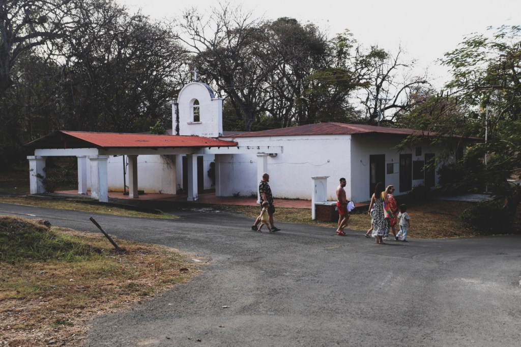 Feribotul catre insula Contadora din arhipelagul Las Perlas (Pearl Islands) a oprit intai si intai pe insula alaturata, pe Saboga. Unde ni s-a parut destul de ciudat ca era control militar (probabil de pasapoarte). Apoi, a ajuns pe insula Contadora, unde se altfel au coborat cei mai multi dintre turisti. Din tot arhipelagul Las Perlas, insula Contadora e cam cea mai renumita si recomandata. Cu plaje frumoase si pustii si apa clara, cam cu asta se mandreste insula. Si cu cateva cazari frumoase direct pe plaja. Noi am ales sa stam la un hotel-pensiune numit Mar y Oro (nu sunt chiar multe optiuni de cazare pe insula), chiar pe plaja, un hotel de trei stele, nu foarte pretentios dar perfect pentru ce aveam noi nevoie. Ne-am luat camere Family (cu cate doua paturi mari) in niste mini casute dragute cu vedere la gradina. Cand am ajuns pe pontonul insulei Contadora (ponton care se afla chiar in capatul pistei de avioane) erau niste mici troscolete (niste masinute ca cele de golf, dar mult mai vechi si rablagite hahaha) care duceau oamenii la cazari. Insula este foarte mica si chiar daca exista niste drumuri/sosele decente, sunt extrem de putine masini. De fapt si de drept… turistii nu au cum sa mearga cu masinile, nu exista optiunea de a inchiria masina pe Contadora. Toata lumea se deplaseaza cu masinute-troscolete pe post de taxi sau transfer, nimic altceva. Si pentru ca aveam inclus transferul acesta de la ponton la hotel (nu era foarte mult de mers, era destul de aproape hotelul) noi, fetele, impreuna cu copiii si bagajele, am mers cu o astfel de troscoleta iar baietii au venit pe jos. Insula e foarte mica, are o arie de nici un kilometru si jumatate, chiar se poate parcurge linistiiiiit la pas. Check in-ul era in mod normal la ora 14:00 asa ca ne-am luat prosoapele si am mers la plaja (unde am vazut si o iguana, distractia copiilor). Pe plaja Cacique, cea din dreptul hotelului. O plaja publica, pe care poate veni oricine, dar care se afla fix in dreptul hotelului nostru. De fapt plaja aceasta, Cacique, si Playa Ejecutiva, sunt considerate cele mai frumoase plaje publice de pe insula.