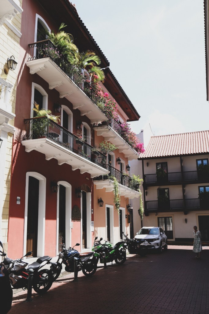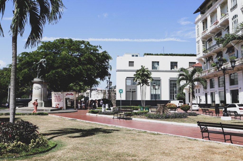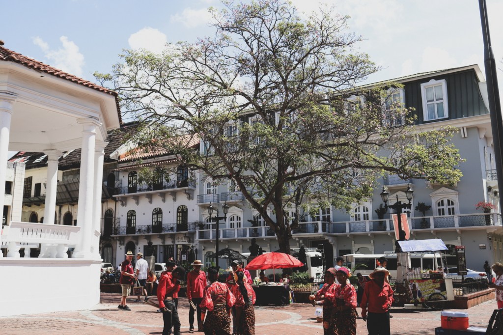 Din punctul meu de vedere, Panama City este definit fix de contrastul acesta de zgarie nori intr-o parte (totul posh, ingrijit, luxos, o bogatie parca demna de Emirate, cu skyline frumos, iahturi frumos ancorate in port, oameni atletici alergand pe Cinta Costera) si cladirile vechi si toata atmosfera mai putin stralucitoare din cealalta parte (cu cladiri mai darapanate – desi unele chiar erau renovate extrem de frumos, mai multa mizerie, oameni mai normali, strazi pe alocuri suspecte). Insa la fel de important si de faimos precum centrul cu zgarie nori din Panama City mi se pare si centrul istoric, Casco Viejo (patrimoniu Unesco). Da, mi-a fost teama de zona aceasta si multe zile am fost asa in cumpana daca sa mergem sau nu – iar asta pentru ca citisem ca nu ar fi tocmai sigura (si avand experienta din Rio de Janeiro, unde unele locuri chiar ne cam panicau teribil, ne venea sa suflam si in iaurt). Totusi, stand doar in zonele mai vibrante, mai pline de turisti (cu multe restaurante, magazine), ni s-a parut destul de ok. Da, am vazut politie la orice colt de strada (lucru care pe mine ma linisteste, pe Andrei il sperie – pentru ca se gandeste ca e NEVOIE de atata politie). Da, unele strazi chiar nu te invitau sa le strabatj. Da, nu am merge acolo dupa lasarea serii. Da, nu as fi vrut sa stam cazati in zona aceasta (desi in unele locuri din Casco Viejo chiar erau niste hoteluri tare dichisite). Dar… pe timpul zilei nu a fost atat de “de speriat” cum ne-am facut noi scenariile. Ba dimpotriva, a fost o plimbare foarte draguta prin centru, pe jos, cu multe opriri in magazine, la muzeul Molelor si la toate buticurile cu produse artizanale.