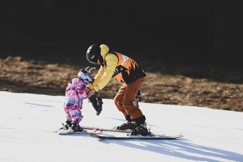 In cazul copiilor, lucrurile au fost INFINIT mai line 🙂 Desi in prima zi pareau ca au uitat tot ce invatasera anul trecut, imediat si-au reamintit. Au inceput cu exercitii pe loc, la baza partiei, cu exersat fiecare picior, alunecat, urmat un traseu anume in zapada, iar apoi au urcat pe partie. La Alexei ne asteptam sa vedem destul de rapid o evolutie si chiar asa a fost. Foarte rapid mergea din nou singur, facand singur virajele, cu instructorul in fata sa. Ba chiar din prima zi urma instructorul mergand cu spatele la el, in fata sa, fara sa aiba deloc probleme de echilibru. Insa la Anastasia nu ne asteptam sa vedem un progres semnificativ fata de anul trecut (avand doi ani si opt luni acum). Ne gandeam ca va aluneca intre picioarele instructorilor, la fel ca anii trecuti, sustinuta cu totul si ea stand ca in leagan 🙂 Dar nu. A inceput si ea sa stea singura pe schiuri, sa faca plugul cu schiurile prinse cat sa nu indeparteze prea mult picioarele (cu mai putin control desigur, dar il facea), sa se deplaseze pe schiuri catre teleschi singura, ca un pinguin, sa coboare si ea usor, usor partia de la jumatatea sa. Ni s-a parut incredibil cat de natural isi asuma ea rolul de schior si cum facea tura dupa tura pe partie. Si pana la urma ar fi fost un succes si simplul fapt ca le-ar fi placut in continuare, si anul acesta, sa stea pe schiuri. Sa se joace, sa alunece, sa se prosteasca putin pe partie. Scopul nu era sa invete cine stie ce, sa marcam niste reusite sau sa avem un tel anume din a invata sa schieze anul acesta. Nici vorba. In continuare scopul a fost doar sa se familiarizeze cu ideea de schi, de schimbat in echipament, de pus claparii, de pus schiurile, de stat pe partie. Mie acesta mi se pare cel mai mare castig (mai ales in cazul Anastasiei). Nu cautam progrese fantastice, lucruri noi invatate de la lectie la lectie, tehnica etc. Nici vorba. Cautam sa mentinem cat mai vie placerea de a invata acest sport. Si daca in tot acest proces vine si putina evolutie (care cel mai probabil vine de la sine), cu atat mai bine. Dar nu fortam in niciun fel acest proces de invatare. Nu ne grabim nicaieri, nu participam la concursuri, nu suntem intr-o competitie cu nimeni. Iata un lucru bun la faptul ca nu stim sa schiem 😀 Nu ne frustram daca procesul de invatare al copiilor este lent si nu grabim lucrurile 😀 Insa ne putem imagina ca pentru parintii care stiu deja sa schieze si care isi doresc sa mearga pe partii mari si lungi si minunate cat mai curand, poate fi frustranta asteptarea aceasta de cativa ani de zile pentru invatat 🙂