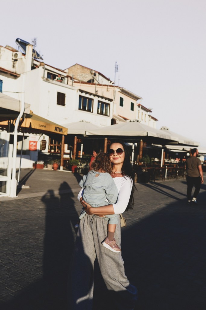 La capitolul cazari, am pornit la drum cu o preconceptie oarecum nefondata. Am ramas noi cu o idee cum ca Grecia ar fi foarte accesibila, cu preturi mici in comparatie cu alte destinatii de la mare din Europa. Si foarte probabil sa fi fost asa pana acum cativa ani. In plus, alegand sa mergem inainte de inceperea oficiala a sezonului, eram convinsi ca preturile cazarilor vor fi foarte mici. Daaaar… nu au fost chiar asa 🙂 Bineinteles, exista cazari de tot felul, pentru toate buzunarele (cred ca asta e una din frumusetile Greciei, ca e atat de variata si adaptabila oricarui buget si oricaror preferinte), insa tiparul cazarilor pe care le cautam noi (Airbnb-uri cu camere mai mari, de familie, parcare si piscina) ni s-au parut destul de scumpicele. Desi ar fi fost poate o idee grozava sa stam cazati undeva in mijlocul orasului vechi, am preferat sa alegem o cazare mai confortabila pentru noi (fiind cu copiii). Undeva cam la 1-2km de mers pe jos de centru, la un hotel micut dar cochet, Charisma Boutique Hotel, cu piscina, camere mari (cel putin cea aleasa de noi, de familie, cu pat suplimentar, terasa mare si bucatarie, era suficient de spatioasa) si locuri de parcare. Multe dintre cazarile din centrul Pargai era foarte micute, mai greu accesibile (sunt multe trepte prin orasul vechi) si fara locuri de parcare. A fost un pic dificil sa facem drumul de la cazare in centru de mai multe ori pe zi uneori, dar a fost compromisul pe care ni l-am asumat. Nu am luat caruciorul cu noi tocmai pentru ca stiam ca Parga este un oras mai deluros, cu trepte si mult urcat, unde ne-ar fi fost dificil sa ne descurcam cu caruciorul. Singurul nostru inconvenient legat de aceasta cazare a fost faptul ca desi aveam bucatarie (maricica am zice), nu o puteam folosi pentru a gati nimic. Nu aveam plita unde sa putem pregati micul dejun (asa cum planuisem de fapt pentru aceste zile). Dar, un mare plus pentru noi la aceasta cazare a fost faptul ca ne-au pus la dispozitie o priza exterioara ca sa ne putem incarca masina (contra cost, desigur, dar fara preturi exagerate, ne-au taxat exact la fel cat am fi platit la un incarcator normal).