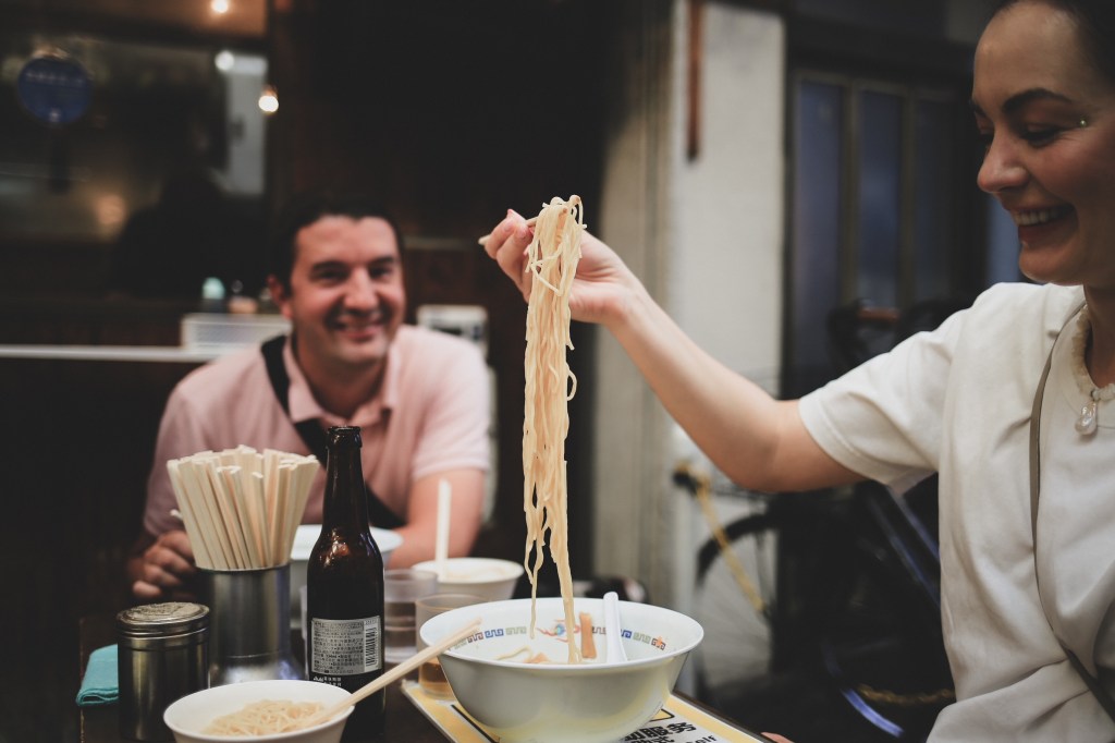 La capitolul restaurante in Japonia mi se pare destul de greu sa faci un research potrivit. Cele mai renumite restaurante (cele mai recomandate, cele mai populare in social media) aveau sa fie acelea unde cozile de asteptare sunt de ore bune (we’ve been there, done that, acum zece ani, am asteptat si doua ore la restaurante numai sa mancam in locuri documentate si recomandate). Insa acum, cu copiii, era complet nerealizabil sa stam ore la cozi, trebuia sa gasim optiuni mai putin populare si mai putin recomandate (la fata locului). Asa ca desi ne-am facut o lista cu restaurante bune, nu am luat-o foarte mult in calcul, pentru ca scopul nostru era sa gasim locuri mai putin cunoscute, unde sa putem manca destul de… rapid.
