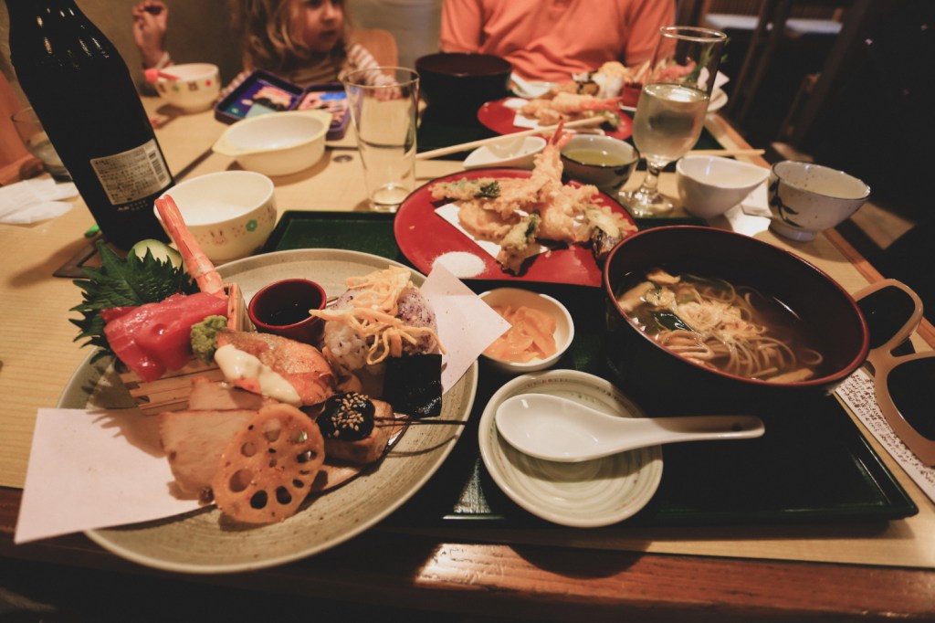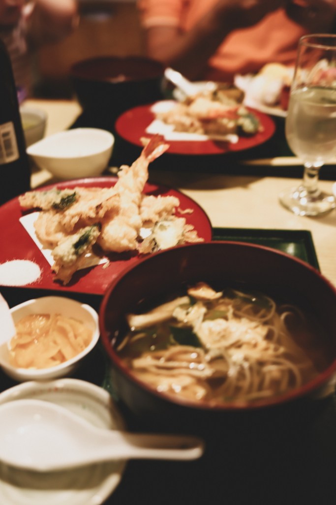Pentru masa de pranz ne-am impus sa fim mai atenti si sa nu mai intarziem masa (pentru ca toate aceste amanari s-au simtit in comportamentul copiilor) asa ca am decis sa mancam la un restaurant din zona Philosopher’s Path (Restaurant Echigo Soba). Ceva extrem de micut, cu cateva mese normale si doua mese pe tatami. Am fost cu totii IN EXTAZ ca am gasit libere cele doua mese pe tatami si am mancat tare bine. Ne-am luat seturi cu mai multe mancaruri japoneze, supa soba, noodlesi yakisoba, a fost totul delicios!