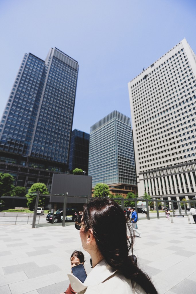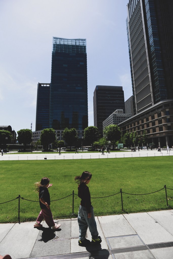 Urmatoarea zi era ziua plecarii. Finalul vacantei, cu intoarcerea in Osaka (de unde aveam sa plecam mai apoi inapoi acasa). Dar ne-am luat biletele la Shinkansen cat mai tarziu posibil, ca sa ne mai putem bucura putin de Tokyo 🙂 Am lasat bagajele in Tokyo Station, unde era o zona imensaaaa cu lockere pentru bagaje si am mers catre Imperial Palace. O vreme superba, insorita (dupa ziua de dinainte, am apreciat-o cu atat mai mult :D) de care ne-am bucurat tare mult in gradinile din exteriorul palatului. A fost prima zi cu adevarat relaxanta in Japonia, in care am stat in parc, am citit cu copiii pe iarba si nu ne-am mai grabit sa vedem nimic. Ceea ce ne-a facut sa ne gandim cum ar fi sa vizitezi tara aceasta si in felul acesta, lent si relaxant, fara sa simti constant dorinta de a vedea totul? 🙂 De multi ani avem un stil mai linistit de a calatori si ne bucuram mai mult de locurile pe care le vedem, fara sa alergam de nebuni, insa Japonia… parca nu te lasa. Parca te tenteaza prea mult, parca te face sa faci tot vrei sa vezi, sa nu lasi nimic in urma (chiar daca negresit lasi :D). Si ma intreb cum o fi sa te lupti cu dorinta asta nebuna de a vedea TOT si sa… experimentezi o Japonie fara agitatie si fara alergatura de dimineata pana seara?