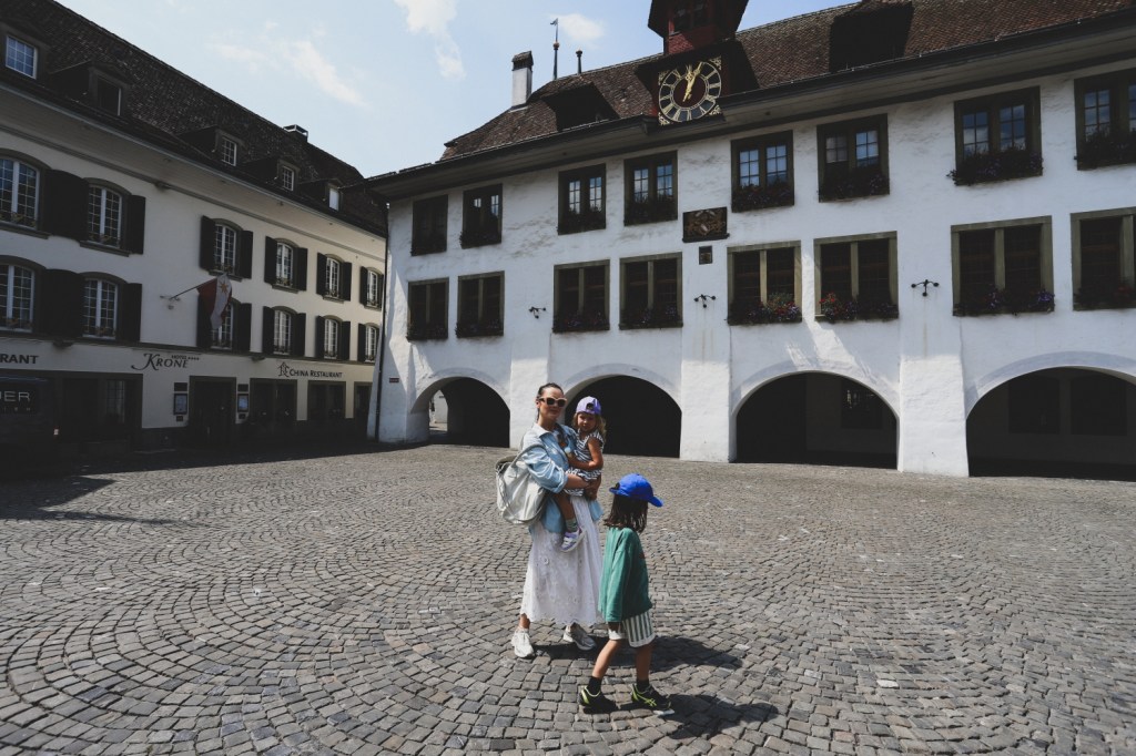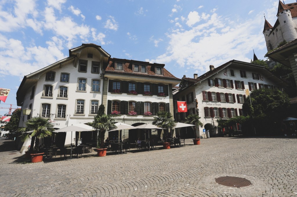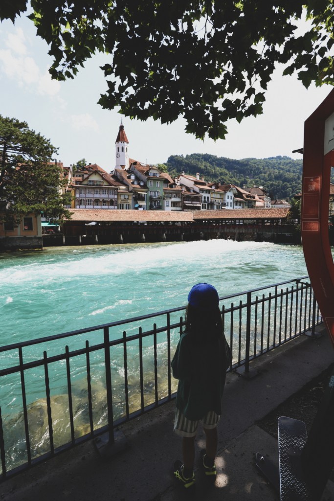 Ne-am plimbat prin Mühleplatz, piata centrala, cu multe cafenele si restaurante, am vazut biserica din Thun, in curtea careia chiar am luat o binemeritata pauza la umbra. Ni s-a parut incredibil cat de cald putea sa fie in zona aceasta in iunie, efectiv ne topeam. Am cumparat cate ceva de la Coop si am luat un pranz-picnic pe malul raului Aare. Cat de firesc este in Elvetia (si in Olanda, si in Tarile Nordice) conceptul acesta de picnic. De a veni cu mancarea de acasa (sau de la supermarket in cazul nostru) si de a te aseza undeva, pe malul raului, in parc sau la o masa de picnic (pentru ca sunt peste tot astfel de mese) si a lua pranzul intr-un loc public. Sincera sa fiu, in tari ca Olanda, Elvetia, Marea Britanie sau nordicele, unde nu exista cine stie ce bucatarie locala, parca nici nu ne vine sa mergem la restaurant. Desigur, lucrurile ar fi fost complet diferite daca vorbeam de Grecia sau Italia, unde de multe ori mergem la restaurante ca parte din experienta de vacanta, ca la un obiectiv turistic :))