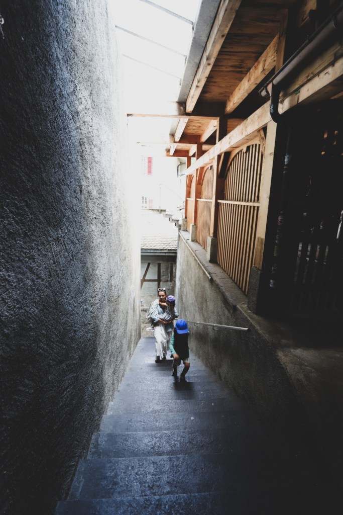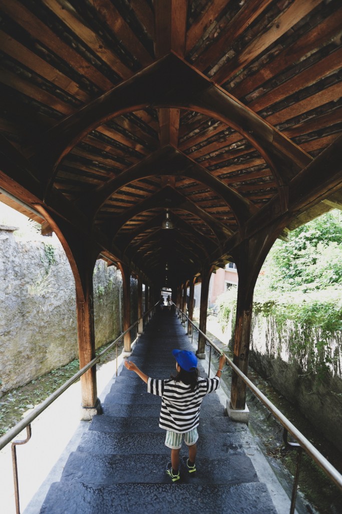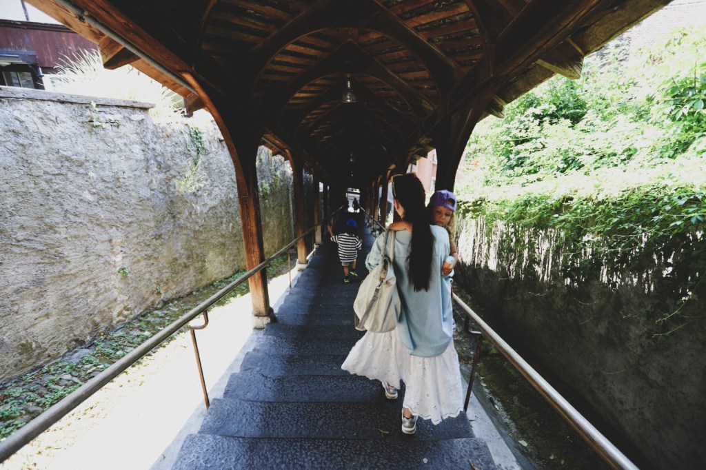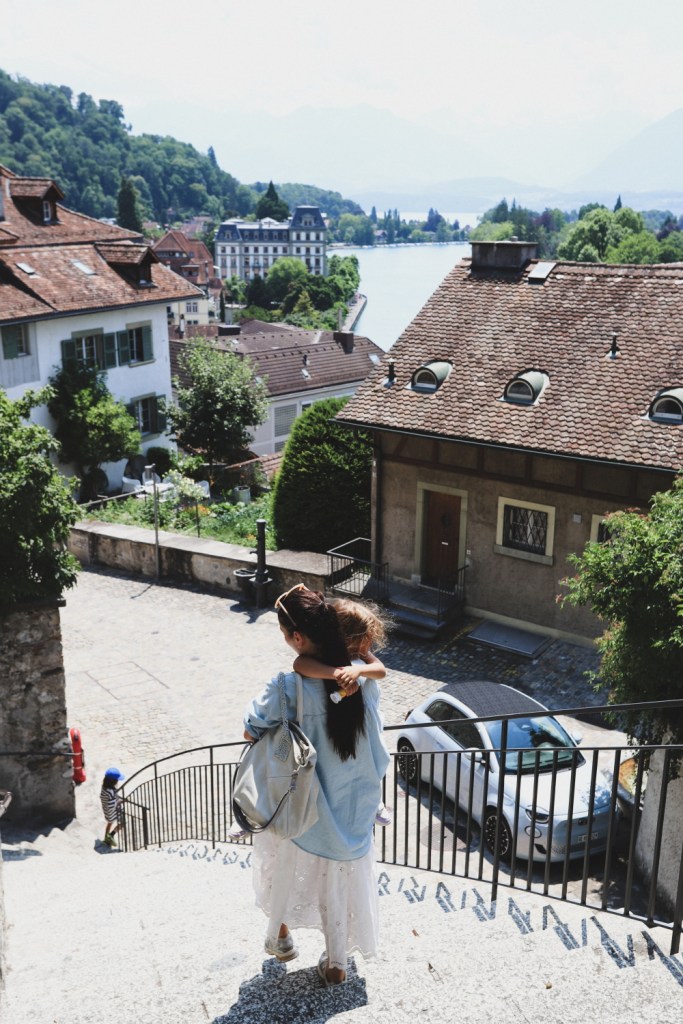 Am mers apoi catre castelul Thun, simbolul acestui oras, construit in anii 1200. Castelul este acum muzeu si o parte din el hotel si restaurant. De la castel am coborat treptele The Kirchtreppe (157 de trepte), pe care le-am gasit complet intamplator. Sunt trepte acoperite cu arcada de lemn, vechi din secolul 14, care au fost construite pentru a lega orasul “de jos” de castel, “orasul de sus”. Nu sunt foarte usor de gasit sau observat, dar duc catre castelul Thun si biserica Stadkirche.