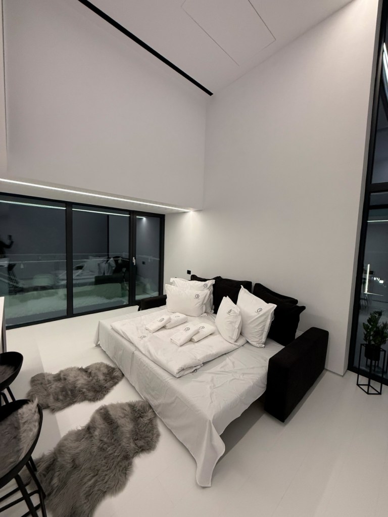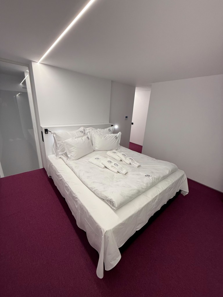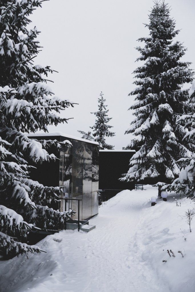 De curand au deschis si o zona de cazare in casute in padure, niste cuburi minimaliste imbracate in oglinzi, cu interiorul deschis la culoare si multe, multe geamuri. Scopul geamurilor si al oglinzilor este sa dea impresia celor cazati ca se “pierd” in natura, ca sunt una cu natura. Conturul caselor se pierde printre brazi iar interiorul cu geamurile inalte ne face sa ne simtim efectiv in natura, in mijlocul padurii. Sunt mai multe tipuri de case, mai mici sau mai mari, fiecare pastrand acelasi tipar simplu, scandinav. Nu se poate gati in casute (nu au zona de kitchineta), insa in costul cazarii este inclus micul dejun (a la carte, se poate alege din doua optiuni generoase de mic dejun). Restul meselor pot fi luate la restaurantul Oxygen Restro (stil autoservire) sau la resturantele din jur (o recomndare primita de la alte persoane care au fost in zona este Hanul Borzont, cu mancare traditionala secuiasca. Exista si un hotel in lucru (de patru stele), este ridicat insa mai este de lucru la el, cel probabil spre finalul anului (sau poate chiar mai tarziu) va fi finalizat. Si hotelul pastreaza aceeasi idee de cladire care se integreaza in natura, fiind “imbracat” in geamuri si oglinzi.