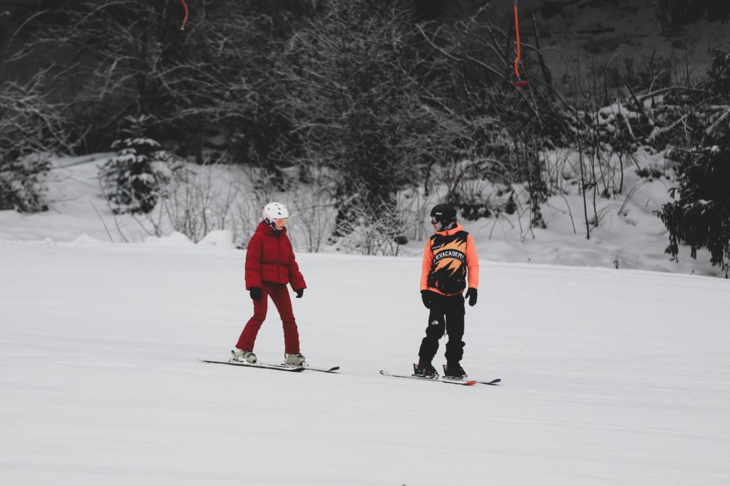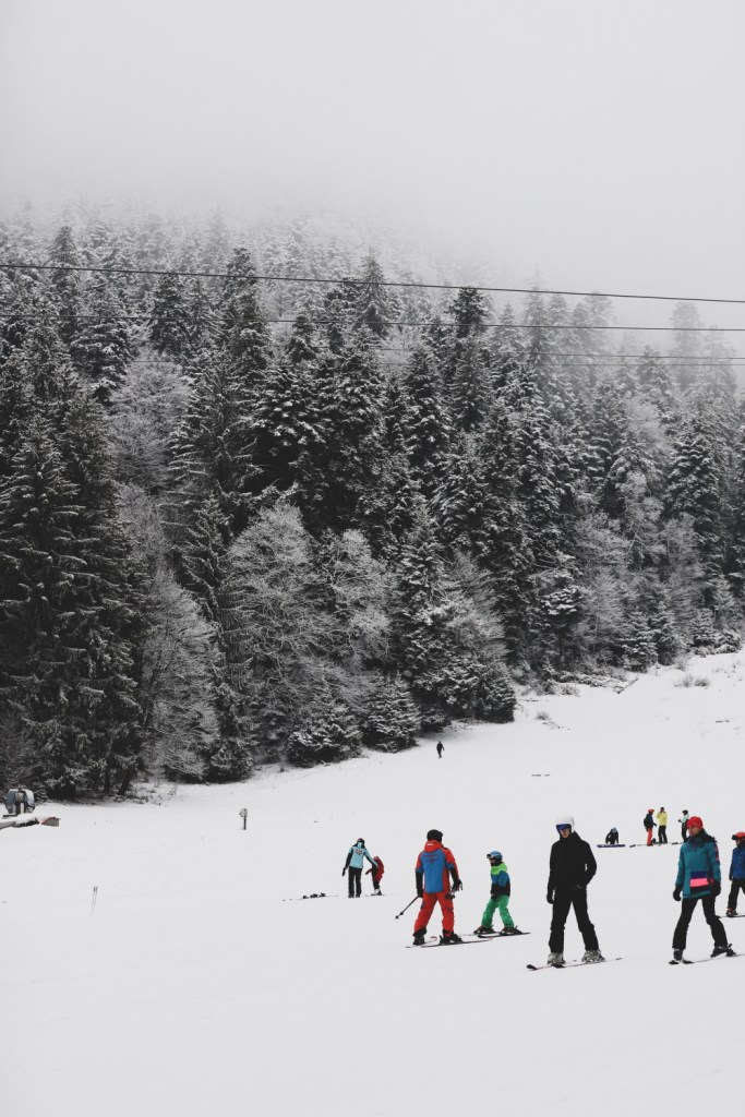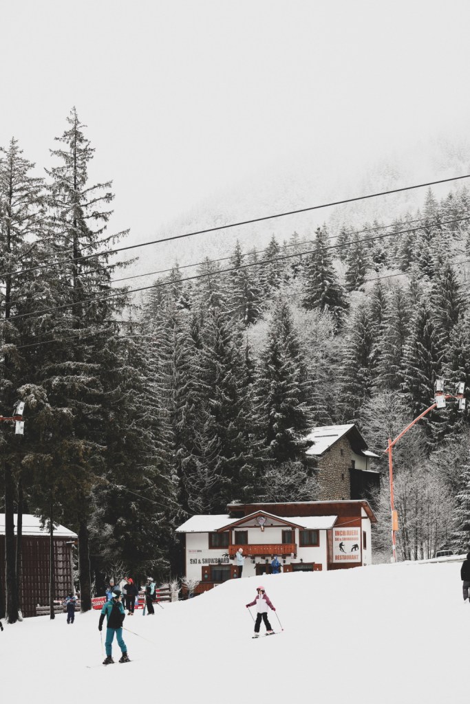 In ultimele patru ierni am reusit sa ne tinem de planul de a veni in fiecare an la schi cu copiii. Am inceput cand erau foarte mici (4 ani si jumatate, respectiv un an si jumatate) si chiar daca am crezut ca va fi un simplu test sau o simpla joaca pentru ei, le-a placut, au fost dornici sa invete si… am continuat sa ii tot aducem. Nu venim mai mult de o saptamana pe sezon la schi (uneori nici atat) dar credem ca si acest “pic” mic, facut cu constanta, in fiecare an, ii ajuta sa puna niste baze in ale schiatului, baze care speram sa se sedimenteze corect si consecvent la varsta aceasta. Si de ce nu, sa aiba un alt start si o alta perspectiva asupra sporturilor de iarna si a vacantelor in general (sa nu considere, asa cum multa vreme am considerat si noi, adultii) ca vacanta este sinonim cu mersul la mare, soare si plaja. Nici eu, nici Andrei nu sunt schiori (nu practicam niciun alt sport de iarna de altfel), insa datorita copiilor si interesului lor pentru schiat, am inceput si noi usor, usor sa invatam (eu cu schiurile, Andrei cu placa). Nu suntem inca independenti, si din pacate, un sport invatat in preajma varstei de 40 de ani vine la pachet cu multe frici, multe conceptii greu de daramat si foarte multa, dar foarte multa lentoare 🙂 Dar… pasii mici inseamna mai mult decat statul pe loc, asa ca ma bucur de orice mic progres al nostru.
