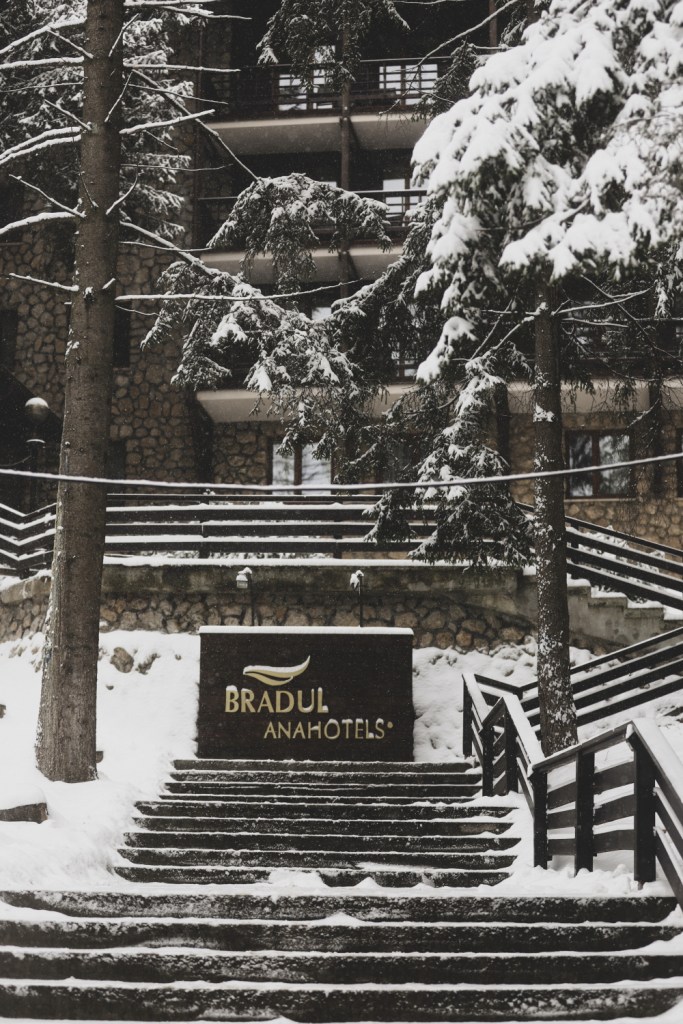 Nefiind familiari cu toata logistica schiatului, am preferat inca din primul an sa avem totul cat mai compact, cat mai… la un loc. Asa ca am ales partia Bradul din Poiana Brasov, perfecta pentru copii si incepatori si totul s-a invartit in jurul acestei partii (partia Bradul are doua instalatii pentru schi, teleschiul si telecabina, pentru gondola din Poiana trebuie mers un pic prin padure sau ocolit prin statiune, la 15 minute de mers pe jos). Drept urmare am vrut sa avem si un hotel cat mai aproape, ca sa evitam nevoia de a ne muta mereu cu masina sau de a cara prea mult echipamentele pentru schi (schiurile si claparii). Cea mai la indemana optiune a fost unul dintre hotelurile Ana Hotels, si anume Hotelul Bradul. La baza partiei Bradul se afla doua hoteluri parte din complexul Ana Hotels: hotelul Sportul si hotelul Bradul. Amandoua sunt hoteluri de patru stele, au facilitati foarte similare (ma refer la camere), singura diferenta pe care o percep eu este mai degraba in stilul fiecaruia dintre ele. Din cum le vad eu, Sportul este poate mai dinamic, mai modern, un hotel clasic dintr-o statiune montana axata pe sporturi de iarna. Bradul este un hotel mai linistit si un pic mai intim. Nu este parte din aceeasi cladire a hotelului Sportul, ci este un hotel separat, situat un pic mai sus, cu un stil mai rustic (ca a cabana montana, nu neaparat ca un hotel), mult lemn, lumina difuza si o atmosfera de hotel-boutique in decoruri.