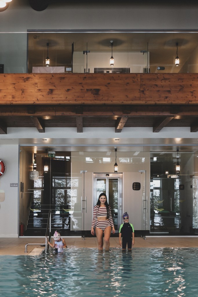 Centrul spa este minunat. Au o piscina uriasa (pe care noi de obicei incercam sa o folosim la orele pranzului, ca sa nu prindem serile, cand se aglomereaza destul de mult), destul de adanca pentru incepatori (are 1,60m), incalzita la 27-30 de grade. Langa piscina se afla si un jacuzzi interior iar in afara cladirii un jacuzzi in aer liber. Pana acum, nu ne parea foarte tentanta ideea de a sta in apa fierbinte cand e frig afara dar anul acesta am descoperit si noi roata 🙂 Si ne-a placut tare mult, inclusiv copiilor. Centrul spa are si saune si o zona de terapii spa (masaje, tratemente corporale sau faciale), si o sala de sport cu aparate.