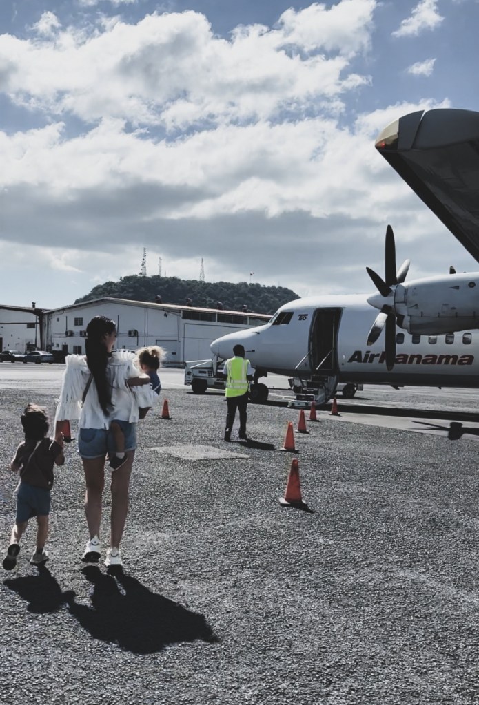 In Bocas del Toro puteam sa ajungem din Panama City fie cu un autobuz de noapte (un drum cam de zece ore), fie cu avionul Air Panama (un drum cam de 50 minute). Initial eram tentati sa luam autobuzul, doar ca sa economisim un pic, insa am primit foarte multe recomandari sa nu. Din cate am inteles, nu e un drum foarte usor, e foarte lung si obositor iar din feedback-ul altor parinti care au fost cu copiii pe acest drum, am inteles ca ar fi si destul de frig (aerul conditionat dat foarte tare pe parcursul calatoriei). Cum n-aveam niciun chef nici de stat atat de mult tintuiti in scaune, nici de vreo raceala capatata pe drum, ne-am gandit sa luam in calcul varianta de a zbura. Am rezervat biletele din iulie (cu 7 luni inainte de a ajunge in Panama) si chiar si asa, nu ne-a fost foarte usor sa gasim bilete. Am prins totusi preturi decente ( aproximatv 150 USD / persoana) insa pana cand ne-am hotarat eu si Andrei sa le luam, nu doar ca nu am mai gasit la aceeasi clasa tarifara, dar zborul de intoarcere era deja plin, nu mai erau locuri deloc. Astfel ca a fost nevoie sa luam un bilet un pic mai scump si la doua ore diferenta fata de prietenii nostri (biletul nostru a costat intr-un final 165 USD / persoana).