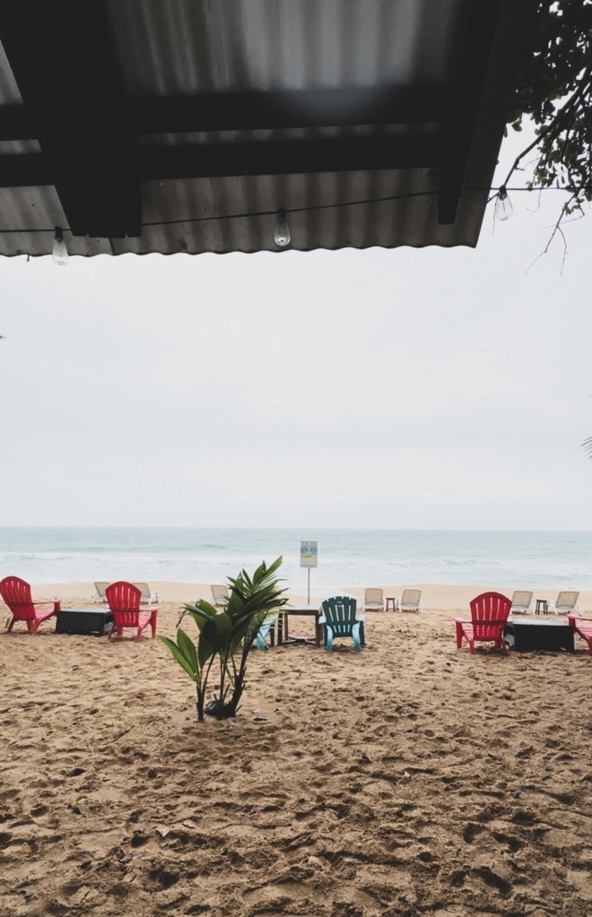 Am luat cina la restaurantul/terasa Bombom, chiar vizavi de cazarea noastra, in timp ce afara ploua si se auzeau valurile puternice. Si noaptea la fel, auzeam din camera valurile si era destul de racoare (ca tot eram noi ingrijorati ca ne vom da sufletul din cauza caldurii si a lipsei aerului conditionat). Ei bine nu, noaptea era suficient de racoare incat sa avem nevoie sa ne invelim.