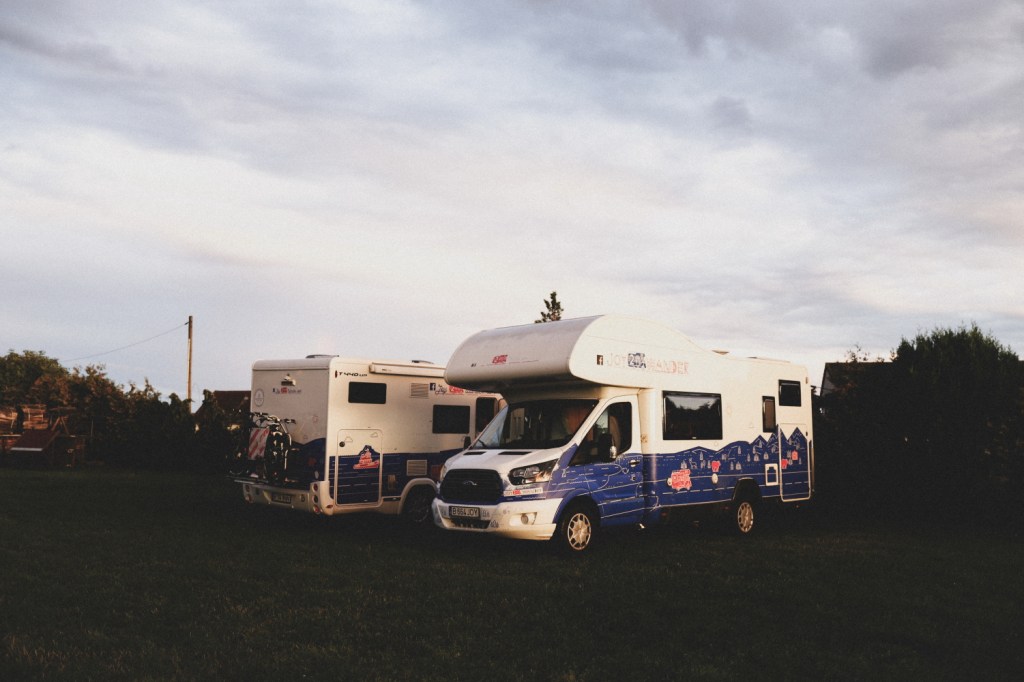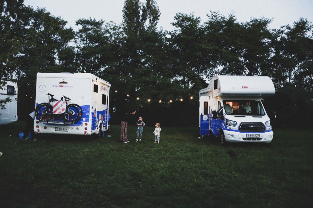 Am pornit in “the trip” vineri dimineata. Dar dimineata, nu gluma. La 5am eram gata de plecare, plini de energie si voie buna (da, niciunul dintre noi nu s-a mai plans de somn cum am fi facut-o in orice alta dimineata cand ne dau copiii trezirea la 6-7). Am plecat un pic mai devreme decat restul grupului pentru a imparti putin drumul lung cu cateva opriri mai lungi in Budapesta, Praga si Hamburg si pentru a profita de ziua de vineri (luata liber de la birou) ca sa parcurgem mai mult din distanta lunga. Cel putin asta ne-a fost planul initial. Sa calatorim din Bucuresti pana in Budapesta in prima zi, apoi din Budapesta in Praga a doua zi si din Praga in Hamburg a treia zi, cand aveam sa ne reunim cu tot restul grupului). Suntem obisnuiti cu drumurile lungi cu masina mica, insa cu autorulota nu am condus niciodata niciodata peste 700-800km pe zi, daramite trei zile la rand de astfel de drumuri. Pentru noi, planul grupului era un pic cam greu, am fi ramas cu siguranta mult in urma caravanei (cel putin asta ne imaginam noi, in panica si agitatia de dinaintea plecarii), asa ca am avut nevoie sa avem cateva ore bune de avans, ca sa putem opri mai des fara sa ne ingrijoram ca ne indepartam prea mult de grup. Nu ne incanta nici ideea de a conduce mult noaptea, din cauza pozitiei copiilor in scaunele auto (dar si pentru ca nu obisnuim sa calatorim noaptea). In autorulota nu se pot monta scaune auto prinse in isofix (nu au isofix), asa ca e nevoie de scaune prinse in centuri, care nu au in general pozitii bune de somn. Al lui Alexei poate fi prins in centura, insa in doua puncte (nu trei), pe bancheta perfect verticala, asa ca intotdeauna ii cade capul si trunchiul in fata. Intotdeauna a fost o adevarata problema pentru noi treaba aceasta cu scaunele auto in autorulota, am tot cautat variante mai bune, insa din pacate nu prea sunt optiuni.