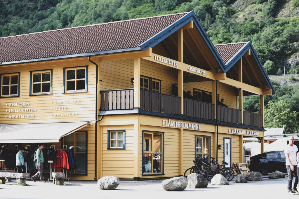 Insa pe langa stat, aveam in plan doua lucruri in satucul Flam: sa facem o excursie cu trenul Flamsbana (un fel de mocanita moderna, foarte moderna :D, cu un traseu spectaculos prin munti) si o croaziera pe fiord. De fapt trei, pentru ca planuiam sa ne plimbam si cu bicicletele toti patru, prin sat si mai departe, pe marginea fiordului pana in Aurland (exista o banda de biciclete paralela cu drumul). Planul initial era sa ne luam cu totii un bilet combinat, care sa includa atat trenul, cat si croaziera (il gasisem aici). Doar ca nu prea ne-am potrivit cu programul acestui tur, trebuia sa facem ambele atractii in aceeasi zi iar pe noi ne-ar fi avantajat foarte mult sa le facem in zile separate. Ne-ar fi costat 253 de euro (2893 nok) pe toti patru sa facem acest tur si chiar daca pe moment ni s-a parut un pic cam prea costisitor, ulterior am realizat ca era un pret destul de bun pentru ce includea (autobuz din satul Flam, croaziera inceputa din Gudvangen pe fiordul Naeroyfjord, autobuz inapoi in Flam si in final calatoria cu trenul Flamsbana din satul Flam pana in Myrdal si inapoi), comparand cu biletele luate separat pentru fiecare dintre atractii. Am hotarat insa sa luam separat, trenul intr-una din zile si croaziera in urmatoarele. Trenul Flamsbana costa 500 nok de adult (87 euro pentru amandoi) iar copiii sub sase ani nu plateau deloc. Croaziera luata separat ar fi costat 182 euro (2088 nok) iar rezervarile se pot face aici. Deci ar fi fost un pic mai avantajos turul combinat.