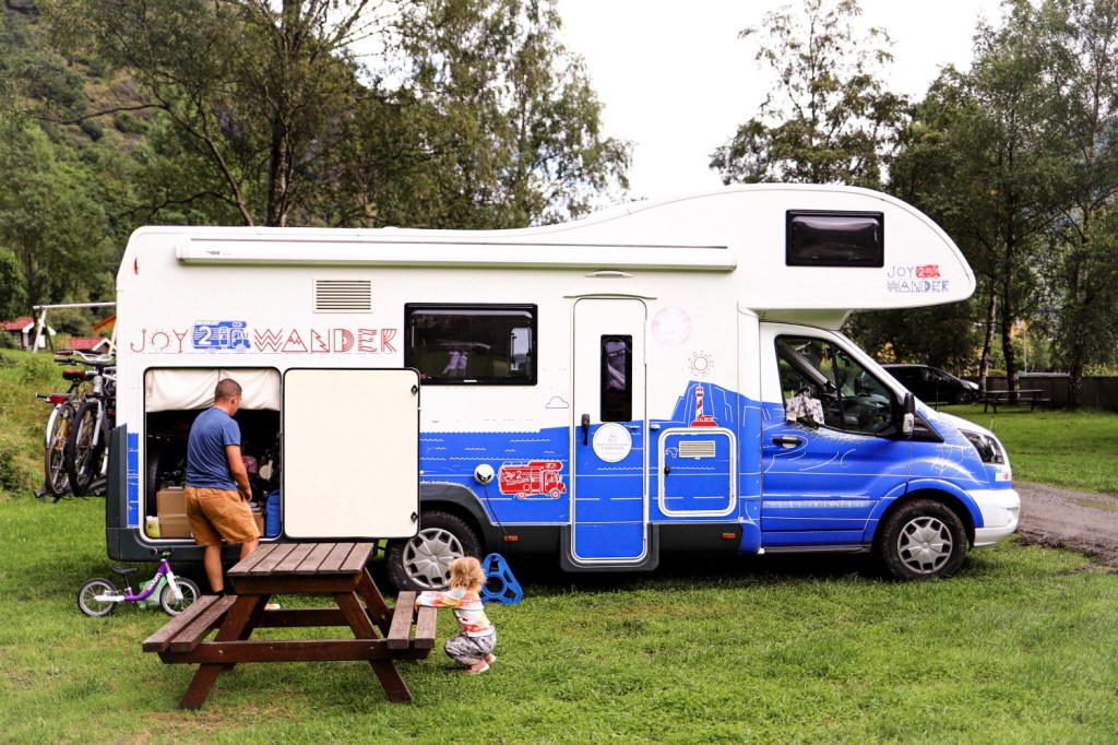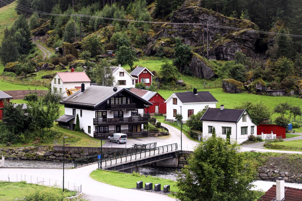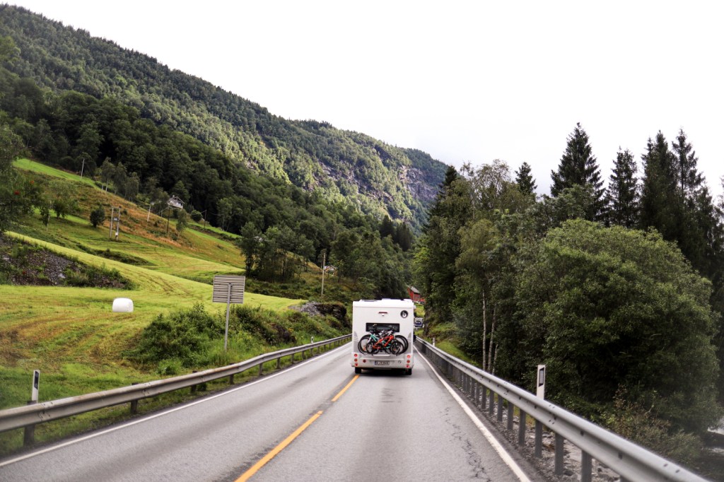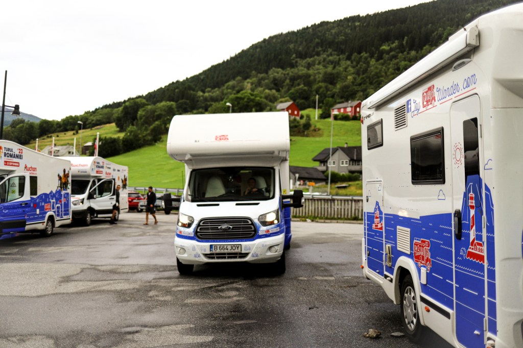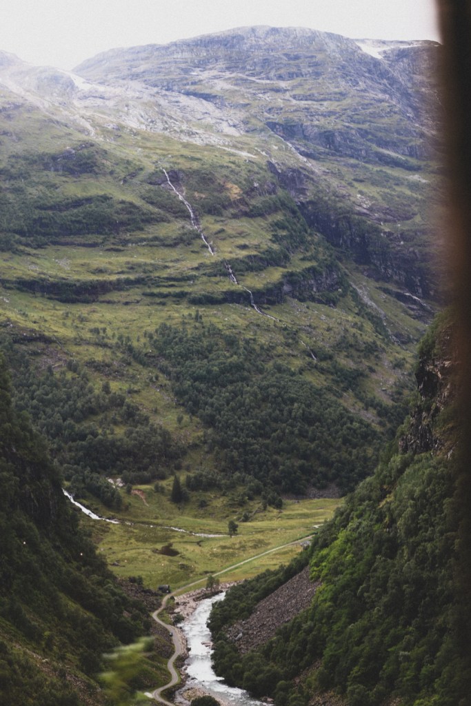 Asa ca nu stiu exact cand si cum, dar am ajuns in satucul Flam. Un sat in mijlocul fiordurilor, renumit pentru peisajele spectaculoase, pentru linia de tren Flamsbana si pentru croazierele pe fiordul Naeroyfjord. Si am campat chiar in campingul numit Flam Camping, vizavi de statia de tren Flamsbana, chiar in mijlocul satucului. Inconjurati de munti, de cascade si de ceata. Cred ca in toate aceste zile fix tipul acesta de camping am sperat ca vom gasi in Norvegia. Chiar daca si am mai stat in campinguri dragute pana in acel moment (Preikestolen Camping, Riis Feriepark in Danemarca), parca niciunul nu se potrivea cu imaginea pe care mi-o conturasem eu in minte despre campingurile din Norvegia. In natura, la baza muntilor, inconjurate de liniste si de sunetul apei cazand din cascade. Ei bine… campingul Flam a fost potrivirea perfecta de puzzle intre asteptari si realitate! Iar imprejurimile erau minunate, absolut minunate! Campingul este foarte mare si are locuri amenajate atat pentru autorulote, cat si pentru corturi, au zona de casute mici de lemn, precum si o cladire hostel. Nu ne-a lipsit absolut nimic in acest camping, am avut toate facilitatile de care am avut nevoie (curent, apa, dusuri, masini de spalat haine si uscator, zona amenajata pentru spalat vasele, loc de joaca pentru copii si chiar si un minivan cu pizza la intrare). Asa ca imediat cum am ajuns am hotarat cu totii sa ramanem doua nopti in acest camping. Pana in cea de-a zecea zi a fost un ritm destul de alert pentru noi, caruia i-am facut fata cu greu. Asa ca aceste doua zile de relaxare in Flam au venit ca o manusa, aveam nevoie de putina incetinire. Si ar fi fost chiar pacat sa nu stam mai mult aici, sa nu ne bucuram mai mult de tot ce vedeam in jur.