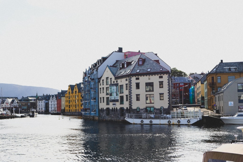 Despre Alesund citisem pe drum pe cateva bloguri ca ar fi un orasel superb, micut si linistit, care ar detrona renumele faimosului Bergen. Un oras care a fost distrus aproape in totalitate dupa un incendiu si apoi construit in stil Art Nouveau (de cand am vizitat Riga, parca “vanam” orasele cu cladiri in acest stil ). Nu stiu daca detroneaza intr-adevar Bergen-ul, insa este un oras foarte placut. Ne-am plimbat, am staaaaat si ne-am bucurat din plin de el. Nu am avut o tinta anume, nu ne-am documentat in mod special despre ce avem de vazut, pur si simplu am luat orasul la pas, am urcat si am coborat, ne-am oprit la o cafenea draguta (Drape Alesund Kaffehus), am trecut pe la un targ de mancare si am stat in port, langa apa. Am prins o vreme incredibil de frumoasa. Iar restul zilei am stat la parcarea-camping, pe marginea apei, admirand toate autorulotele-monstrii care veneau sa campeze. Pentru prima oara am vazut “apartamente pe roti”, exact ca in documentarea americane cu RV-uri de vanzare. Niste imensitati de masini, care aveau inclusiv loc de garaj pentru o masina mica. Autorulotele noastre, mari si acelea dupa standardele noastre, erau pur si simplu mici copii fata de ce era in parcarea aceasta 🙂
