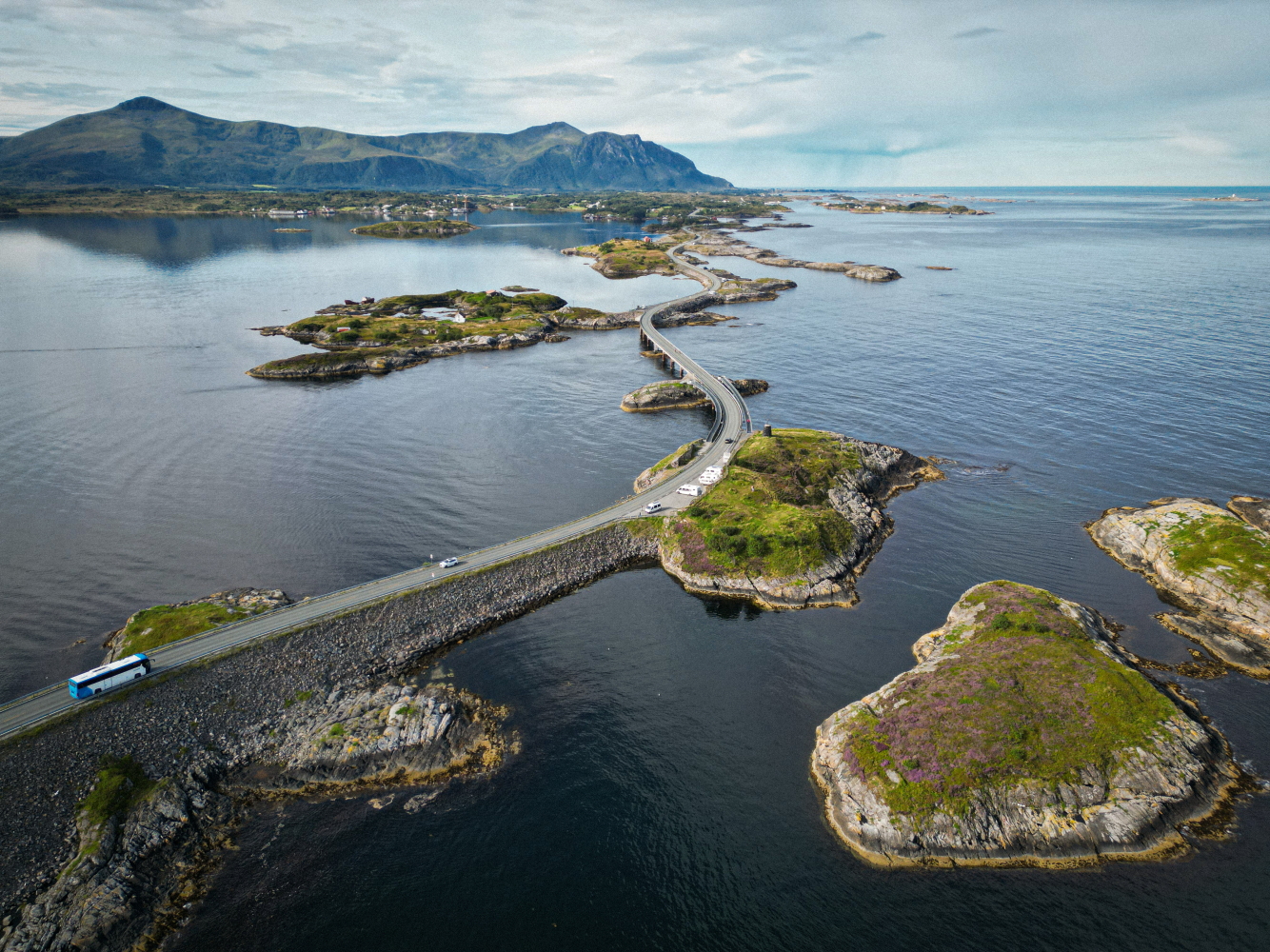 Atlantic Road este o minune inginereasca, un drum de peste 8km construit peste apa, care uneste mici insule dintr-un arhipelag norvegian. In scris parca nu pare asa mare spectaculos, insa sunt opt poduri (OPT!!), diguri rutiere si viaducte pe acelasi drum (deschis in 1989). Acest drum fascinant e considerat unul dintre CELE MAI FRUMOASE DRUMURI DIN LUME. Conecteaza orasul Vevang (de pe continent) cu orasul Karvag (de le insula Averoy). In anul 2005 drumul acesta a fost declarat Constructia Norvegiana a Secolului. Intelegem perfect de ce. Norvegia are peste 1800 de tuneluri (rutiere si feroviare), care mai de care mai complex si mai impresionant, insumand peste 1000km distanta. Cand ne gandim ca Romania nu are nici macar 1000km de autostrada construiti pe pamant plat si drept… avem nevoie de norvegieni in viata noastra! :))) E spectaculos ce fac oamenii acestia ca infrastructura, orice pare imposibil pentru noi (cum ar fi un drum peste niste mici insulite) pentru ei este posibil.
