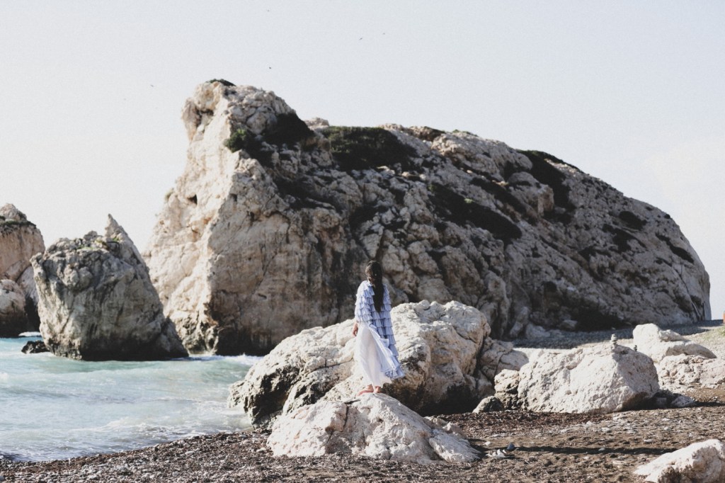 Nu am ajuns sa vedem foarte multe plaja in aceasta vacanta (in zilele in care a fost cald am preferat sa stam la plaja hotelului), insa plaja Afroditei ni s-a parut minunata! Din nou voi face precizarea ca am vazut-o inafara sezonului (nu la final de sezon, ci complet inafara sezonului, la inceput de decembrie), cand nu sunt multi turisti in Cipru. Am mers dimineata devreme, imediat dupa micul dejun (la ora 9) si pana pe la 11 am fost singurii oameni de pe plaja. Ulterior da, s-a mai aglomerat, ba chiar a venit la un moment dat un autocar de turisti. Da, chiar si inafara sezonului exista autocare cu turisti, nu vreau sa imi imaginez cum este plaja aceasta pe timp de vara. Cel mai probabil om langa om langa om. Plaja in sine (si rocile Afroditei) sunt minunate si din fericire nu exista nimic pe plaja (sezlonguri, taverne, magazinase), e totul liber si ingrijit. Nu este plaja de nisip, ci de pietre, insa pentru noi, care nu am stat propriu zis la plaja, ci doar ne-am bucurat ca de un picnic acolo, a fost minunat. Totusi, este o zona foarte bine amenajata. Este o parcare mare vizavi de drumul de coasta iar pe plaja se ajunge coborand niste trepte si trecand printr-un culoar de piatra foarte, foarte stramt. Sus, pe marginea drumului exista si un magazin cu diverse suveniruri si ceva de baut/mancat (cu recenzii destul de proaste din ce am citit pe net). In mitologia greaca, locul acesta (stanca Petro tou Romiou) este locul de nastere al Afroditei, zeita frumusetii si a dragostei. De fapt, cam totul de pe insula are intr-un fel sau altul legatura cu Afrodita, nu degeaba este cunoscut Cipru ca fiind insula Afroditei.