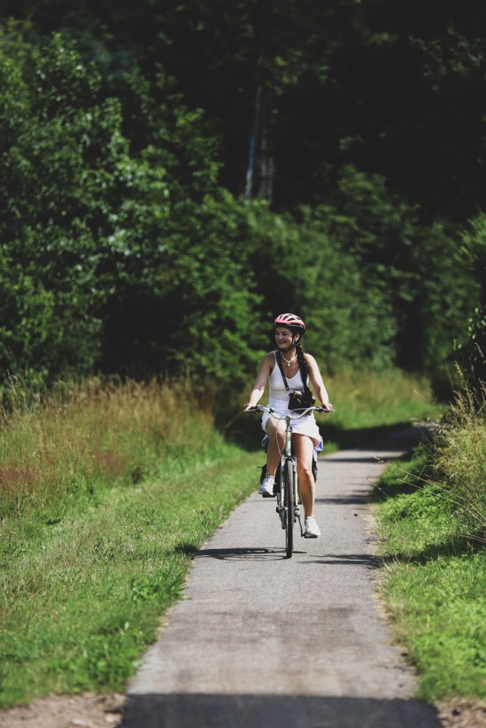 Pe noi ne-au impresionat traseele de bicicleta facute pe foste cai ferate. Practic, fostele sine au fost scoase si pe acolo pe unde trecea trenul au asfaltat si au facut pista de bicicleta. Este chiar renumita Iutlanda pentru astfel de circuite de bicicleta pe fostele sime de tren. Spre exemplu noi am ales doua astfel de trasee si ne-au placut foarte mult. Primul a fost un traseu intre orasele Silkeborg si Horsens (The Bryrup Railway Path, considerat cel mai frumos astfel de traseu de biciclete), ruta 31 de biciclete. In total, toata pista aceasta are 61km lungime, noi insa, fiind cu copiii am facut doar vreo treime (adica am mers cam 20km dus, 20km intors, un total de putin peste 40km). A fost destul de intens, mai ales pentru mine si bicicleta mea inceata, iar Anastasia a stat in scaunul de bicicleta (nu ar fi putut sa mearga atat de mult). E un traseu foarte frumos pentru ca trece prin mai multe tipuri de peisaje (campuri, paduri, mici dealuri insa usoare, in mare parte este plat tot traseul) iar pe la jumatatea traseului am putut sa ne plimbam cu trenul vechi intre localitatile Bryrup si Vrads. Calatoria aceasta (scurta, de 15 minute pe sens) a fost o experienta foarte interesanta, mai ales pentru copii. Au stat in vagoanele vechi, au primit bilete de tren ca pe vremuri (din carton gros, dreptunghiulare), care au fost capsate manual de conductor. Mai multe detalii despre acest traseu aici.