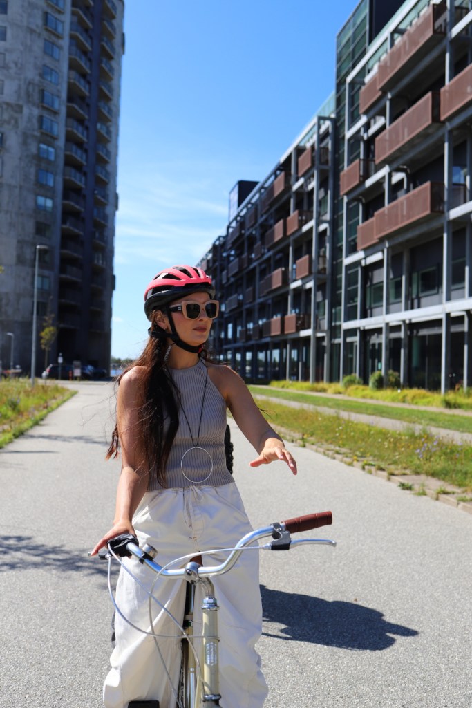 Surpriza a fost mai degraba faptul ca danezii considera piste de biciclete amenajate ceea ce olandezii ar numi probabil o poteca cu pietris si nisip, potrivita pentru mers pe jos. Pe care clar se poate merge cu o bicicleta potrivita (mtb), dar pe care olandezii cel mai probabil nu ar incadra-o la “pista”. Deci la capitolul piste amenajate, mi s-a parut ca Olanda sta mult mai bine, cu pistele lor impecabile, intretinute, reparate, vopsite, briz-brizate. Iar a doua surpriza (complet neasteptata) a fost faptul ca desi amandoua, atat Olanda si Danemarca, sunt ironizate ca fiind atat de lipsite de relief (flat as a pancake, cam asa le merge faima amandurora), Danemarca e destul de nivelata. Piste cu urcusuri si coborasuri destul de accentuate, destul de nepotrivite pentru un o bicicleta “de carat bagheta in cosulet” cum am eu, sau pentru un copil incepator pe bicicleta (cum este Anastasia acum). Prin urmare, as incepe articolul acesta despre bicicleala in Danemarca subliind faptul ca nu, bicicleta de oras cu roti subtiri si cosulet de paie in fata, nu are ce cauta in acest peisaj. Mountain bike, mountain bike electric, bicicleta “de bagheta” electrica, da. Sau cu putina indulgenta chiar si un city bike cu roti mai potrivite terenurilor mai accidentate, cu nisip/pietris/pamant. Nu bicicleta mea. Subliniez, nu bicicleta mea :))) Si o a treia surpriza ar fi faptul ca multe rute trebuie facute dus-intors. Nu sunt neaparat alternative la traseu, sa faci un tur circular venind la intors pe alt traseu decat la dus. Ceea ce e bine de luat in calcul.