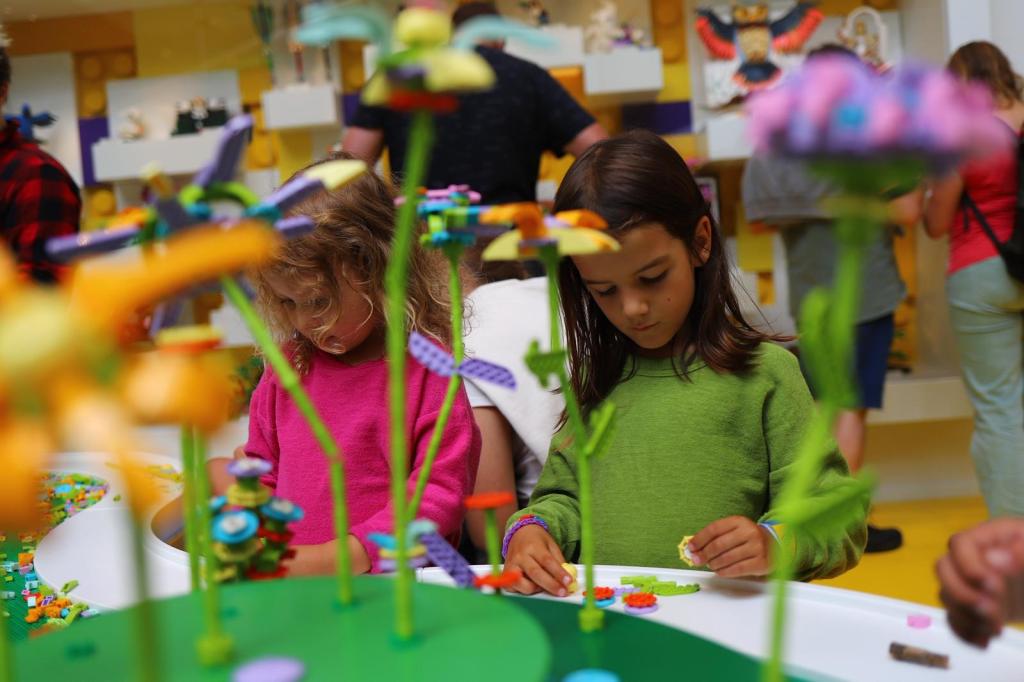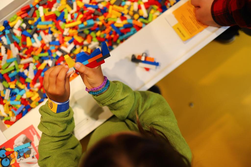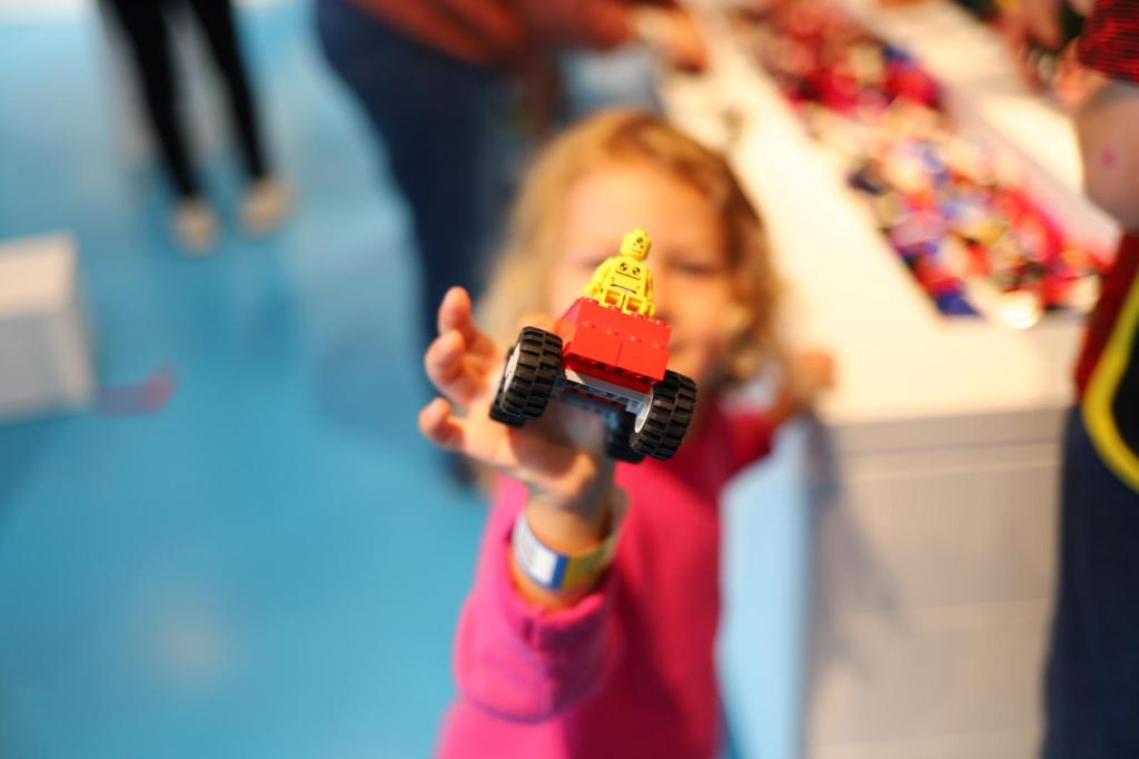 Zona Rosie este prima zona experimentata de noi, in care ne-a atras din start cascada imensa de piese LEGO colorate. E fascinanta, o mare de piese in toate culorile, care se opreste in “bazine” pline ochi de piese de construit. Tot aici se afla si o piscina cu piese LEGO Duplo, pentru copiii mai mici, si o zona de construit doar cu piese de aceeasi forma si culoare (galbene, piesele cu cate 8 cercuri, 2×4). Se spune ca devii mult mai creativ in constructiile LEGO atunci cand folosesti un singur tip de piesa. Si adevarul e ca era fascinant ce iesea din mainile oamenilor in aceasta zona.
