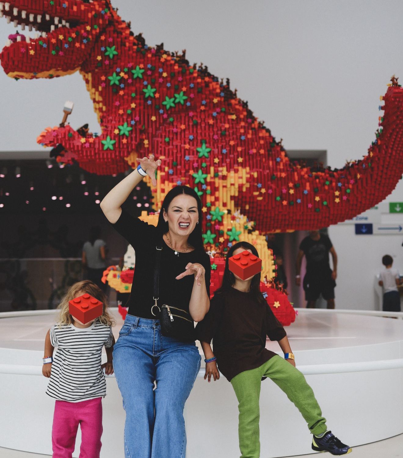 La ultimul etaj se afla MasterPiece Gallery, unde sunt trei dinozauri imensi, facuti din piese LEGO de feluri diferite: unul din piese LEGO Duplo, al doilea din LEGO System si al treilea din piese LEGO Tehnic. Sunt fascinante! iar la cel mai de jos etaj al cladirii se afla muzeul de istorie LEGO, unde se poate vedea cum a inceput aceasta companie, care au fost primele jucarii facute de ei, prima piesa de LEGO, unde sunt afisate seturi LEGO vechi si mai moderne. E o zona minunata, ne-ar fi placut sa stam mai mult daca ar fi vrut copiii nostri sa dea timpul de construit (dar n-au vrut, haha).