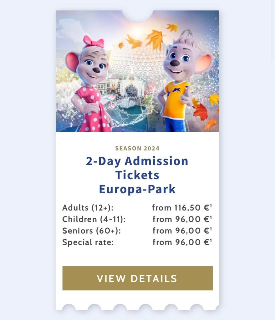 Paaai. Noi am avut de platit doua bilete de adulti si un bilet de copil peste 4 ani. Pentru Anastasia nu a trebuit sa platim nimic. Biletul de adult pentru o zi costa 61,50 euro, cel de copil peste 4 ani 52 euro. Insa noi am ales optiunea de bilete de doua zile, care au fost un pic mai avantajoase decat daca am fi luat bilete de cate o zi. Adica biletul de adulti pentru doua zile a costat 116,50 euro iar cel de copil peste 4 ani 96 euro. In total 329 euro. La care am adaugat doua zile de parcare (10 euro pe zi). Un total de 350 euro pentru intrarea in parc pentru toti patru.