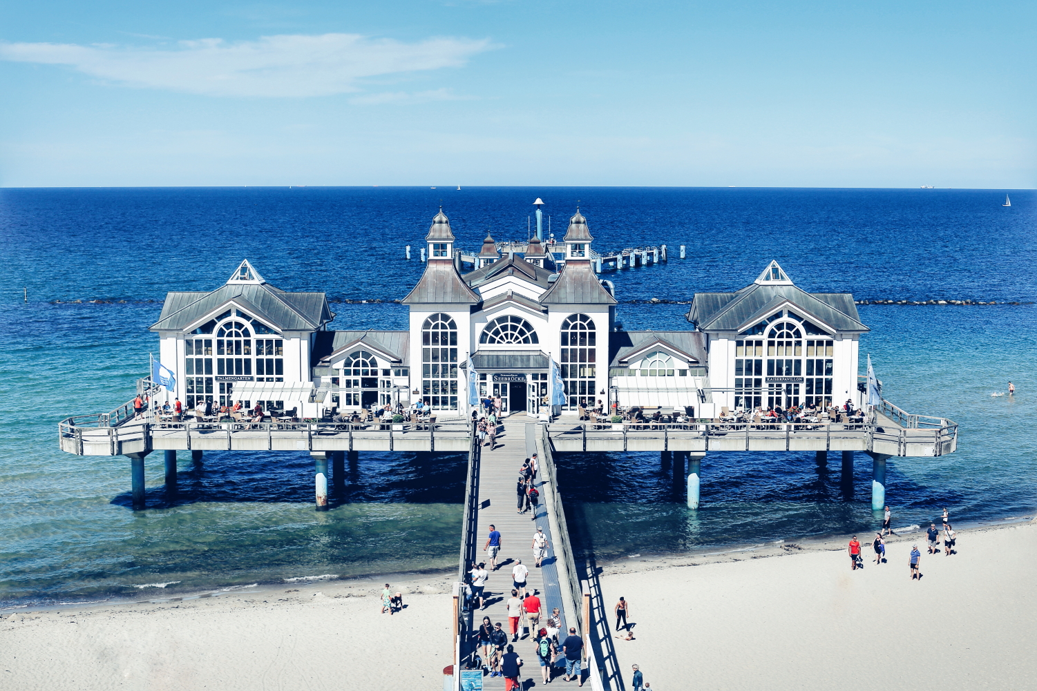 EN: We have to admit it, the main reason why we wanted to see Rugen island is… the picture below. Yup, the white art-nouveau building on Sellien pier was the main attraction. And maybe Rugen Island is not quite the exotic Paradise that most of the people think about when talking about islands and postcard beaches, but for the northern people, who are terrified by the heats of the Mediterranean and those who love the cold and chilly weather, this might be the perfect compromise. And not just the white building from the end of the pier, photographed at sunset, from the beach full of beach chairs is the ace up the sleeve of this place. Even the main street, Wilhelmstrasse, full of old buildings and hotels that look like real manors, is extremely beautiful. Somehow, this seems to be a German paradox π Even though the entire town wants to be different than the sunny southern part of Europe, the local architecture seems to be closer to the Mediterranean style, maybe a bit more posh that one could imagine π By the way, the building from the end of the pier was destroyed several times throughout its history, mainly because of the bad weather, but since 1997 it was completely rebuilt and since then it looks like brand new πΒ Β