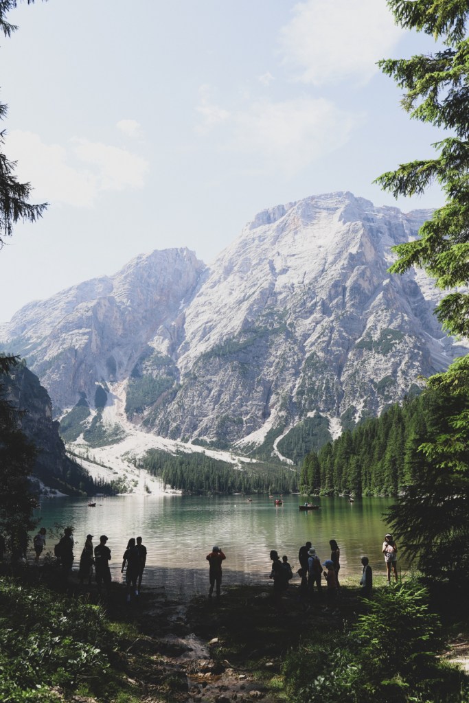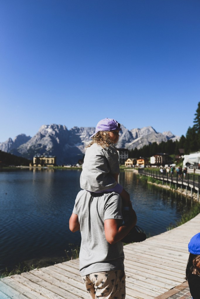 A cea de-a treia zi ne-am incercat din nou norocul cu Lago di Braies, de data aceasta mergand direct cu autorulotele (15km distanta de camping). Am incercat sa fim cat mai matinali posibil, ca sa putem prinde locuri in parcare. Nu se poate campa la lac, chiar daca exista mai multe spatii de parcare, insa se poate intra in parcare cu autorulota (la parcarea P4). Din pacate, chiar si dimineata devreme (adica 9-ish) nu am reusit sa gasim loc de parcare, erau toate ocupate complet. Asa ca Andrei ne-a asteptat in parcare, cat timp eu si copiii am vizitat putin lacul. Este poate ca cel mai renumit lac din zona Dolomitilor, cunoscut pentru culoarea superba a apei (turcoazul acela impresionant) si imprejurimile frumoase (muntii care se oglindesc in lac, casuta de lemn de pe lac si barcile acelea frumoase din lemn care chiar fac locul acesta sa lara desprins din povesti). Se poate merge usor in jurul lacului (e un traseu usurel de aproximativ 4km, erau familii chiar cu carucioare pe acolo). Noi l-am prins insa foarte aglomerat, insa era de asteptat. Este un lac foarte popular, are parcare la cativa metri de el, e usor accesibil, e foarte frumos, apare peste tot in recomandari, deci e firesc sa fie arhiplin (cred ca oricand, nu doar vara).
