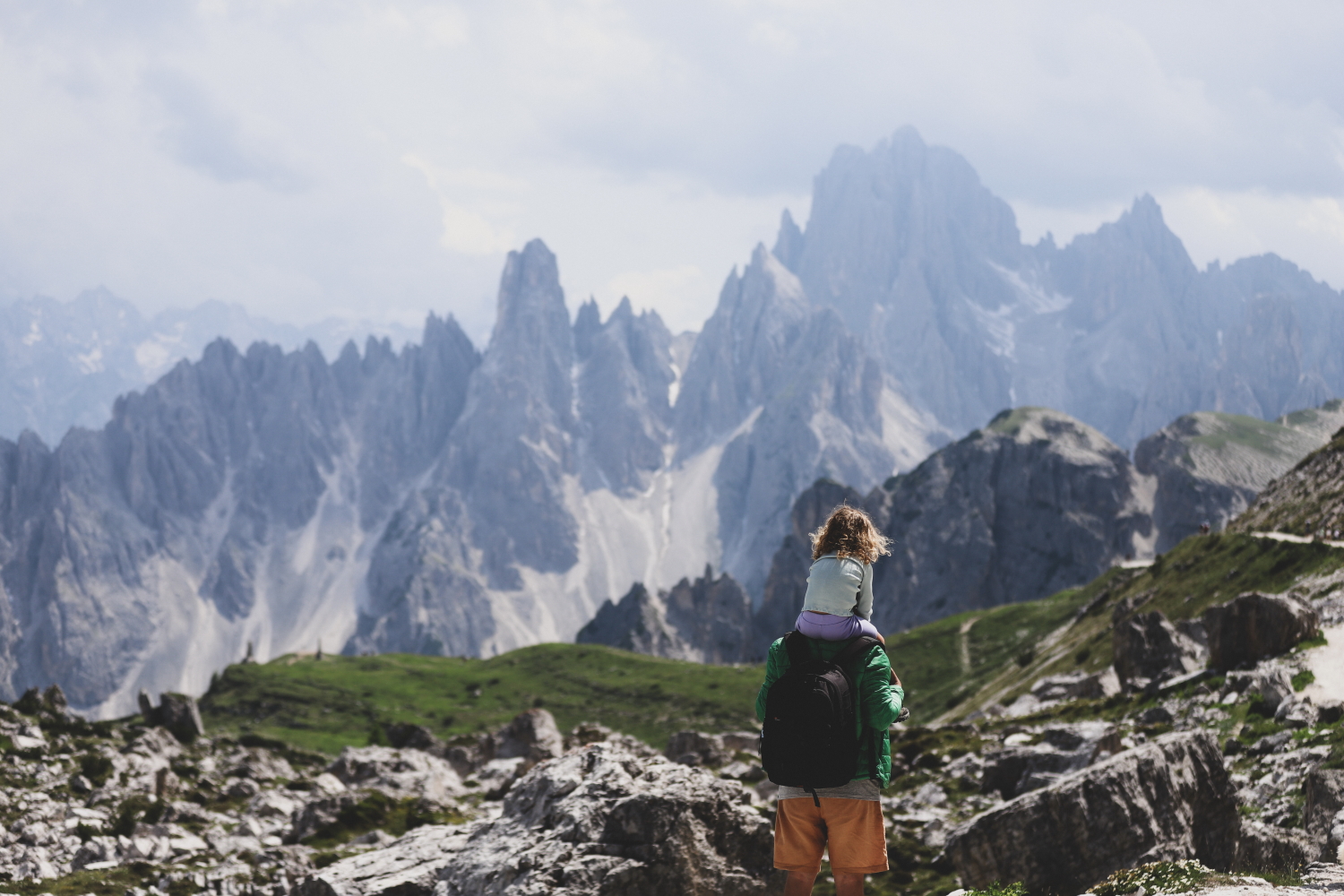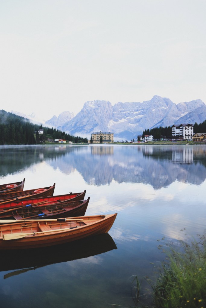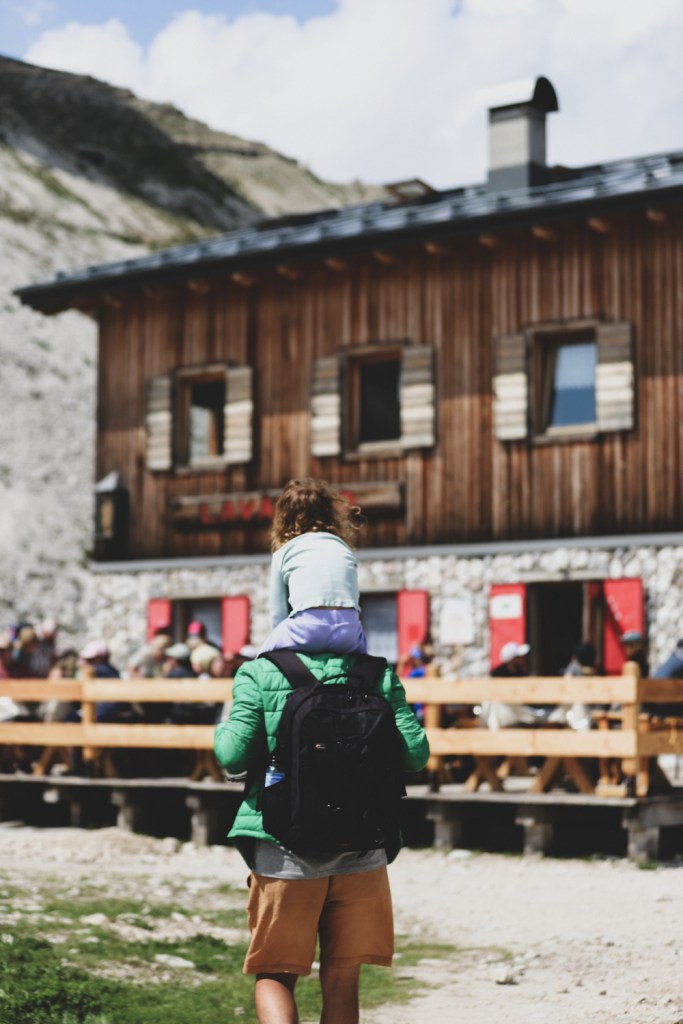 In dimineata celei de-a patra zi in Dolomiti, am mers sa inconjuram lacul Misurina cu totii. Am fi vrut sa inchiriem o barca de lemn (la fel ca cele de pe Lago di Braies) sau o hidrobicicleta, insa centrele de inchiriat nu erau inca deschise (teoretic, sezonul oficial de vara nu incepuse inca, desi era o calduraaaa si o vreme fix “de sezon”). Asa ca am inlocuit plimbarea cu barca cu o urcare cu telescaunul numit Seggiovia Col de Varda (porneste chiar de la lac), pana la refugiul Rifugio Citta di Carpi, aflat la 2100m inaltime. Am urcat 15 minute in telescaunul cu doua locuri si am ajuns in varf de munte unde se vedeau superb imprejurimile. Inca o data, muntii Dolomiti ne-au dat pe spate. E fascinant ce forma au, cat pot fi de impunatori, nesflefuiti si de inalti (cel mai inalt varf din Dolomiti masoara 3343m). Am coborat apoi si am facut inconjurul lacului, incet, bucurandu-ne de liniste. Ceea ce era mare lucru pentru noi, avand in vedere faptul ca tot ce am vazut in Dolomiti pana in acel moment era foarte aglomerat. Mi-as dori atat de mult sa reusim sa revenim in aceste locuri toamna, cand este mai frig si poate mai putina lume. Tot ce am vazut zilele acestea ne-a facut pofta sa ne intoarcem, intr-o perioada mai linistita, in care sa ne bucuram pe deplin de natura si de toate minunatiile pe care le-am vazut acum (un pic grabiti, un pic stresati, un pic cam tensionati uneori din cauza aglomeratiei).