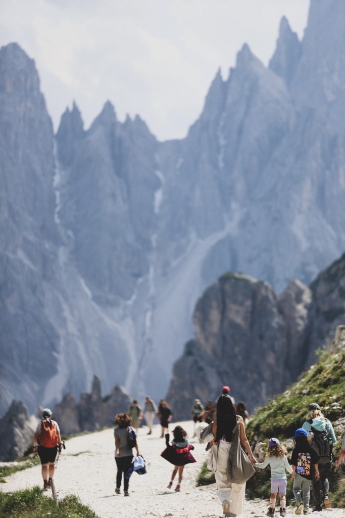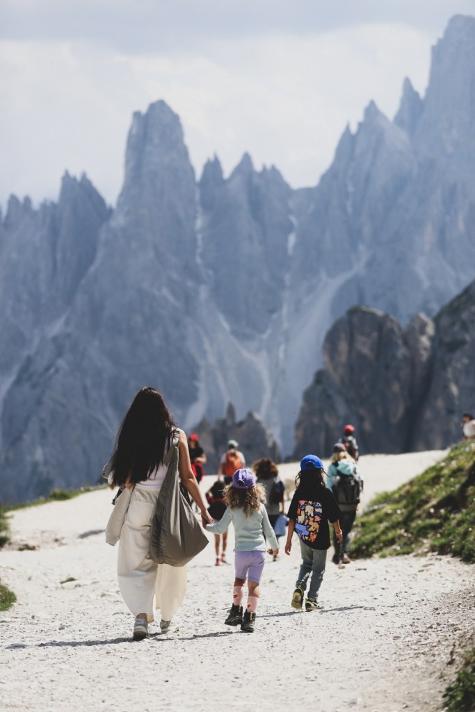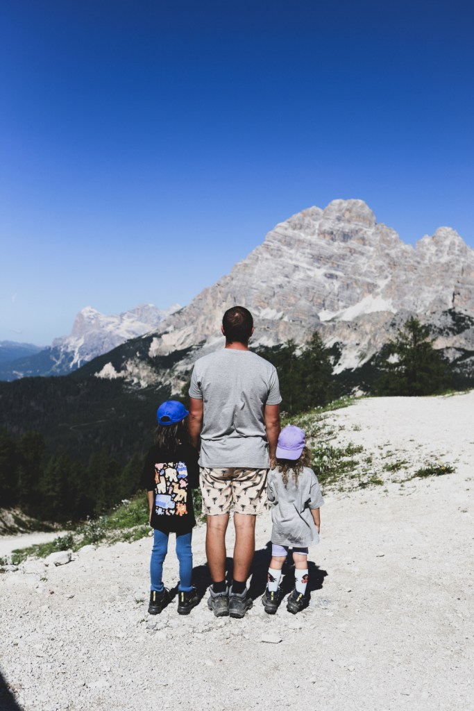 Dupa Lago si Braies am pornit catre urmatoarea destinatie: camper stop-ul Area Sosta Camper Misurina, unde planuiam sa ramanem o noapte. Nu este un camping, ci doar o parcare pentru autorulote (vizavi de parcare este totusi un camping, Camping Alla Baita, unde ne-ar fi placut sa oprim dar nu am gasit deloc locuri). De aici puteam ajunge foarte usor la renumitele stanci Tre Cime di Lavaredo, unele dintre cele mai iconice varfuri din arcul alpin (parte din patrimoniul Unesco) la care ne doream foarte mult sa ajungem. Fiind cu copiii, am ales poate ca cea mai usoara varianta de a ajunge la stanci, am luat autobuzul din fata camper stop-ului (10 euro de persoana dus intors), care ne-a lasat sus, chiar la Rifugio Auronzo. De aici am facut un traseu scurt si usor de 1,8km dus pana la refugiul Lavaredo (ambele refugii aveau restaurante, terasa si facilitati, nu erau simple refugii montane). Insa chiar si traseul acesta scurt si usor ni s-a parut impresionant. Cele trei varfuri sunt spectaculoase, cu formele lor neslefuite (varful Cima Grande are 2999m inaltime, varful Cima Ovest are 2973m inaltime iar varful Cima Piccola are 2857m inaltime). Nu stiu daca are cineva indrazneala sa urce pe ele (presupun ca da), insa noi ne-am multumit sa le privim de la distanta.